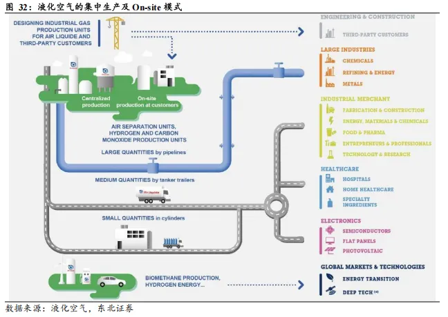 “大宗+特气”双轮驱动扩张,先发卡位构筑一体化壁垒。跨国气体巨头凭借深厚的历史积淀与激进的并购扩张策略,确立“大宗+特气”双轮驱动的全球版图。在大宗气体赛道,林德、液空等领军者采取“伴随式”布局,通过在晶圆厂建设初期同步植入现场制气站(On-site),依托TGM(全面气体管理)的一体化解决方案深度绑定客户,这种“先发入驻+系统集成”的商业模式为后来者设立了极高的技术与专利门槛。而在电子特气领域,国际巨头展现出压倒性的品类广度,以林德为例,其拥有超百种特种气体及混合气的生产供应能力,能够以全谱系产品矩阵满足半导体制造对材料多样性的极致需求,进一步夯实其市场统治力。