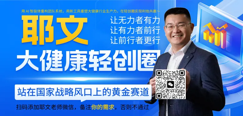 AI 不再是 “噱头”,而是重塑大健康行业的底层基础设施。从市场分析、客户筛选、内容生成,到服务交付、团队管理,AI 智能体将替代 80% 的标准化工作,让创业者从低效劳动中解放出来,聚焦核心价值创造。