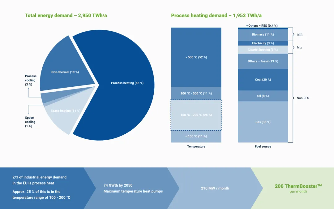 德国和欧洲的监管条件正日益影响工艺热能发电的电气化。高温热泵是政策制定者战略的核心,因为它们非常适合帮助实现欧盟雄心勃勃的气候目标。