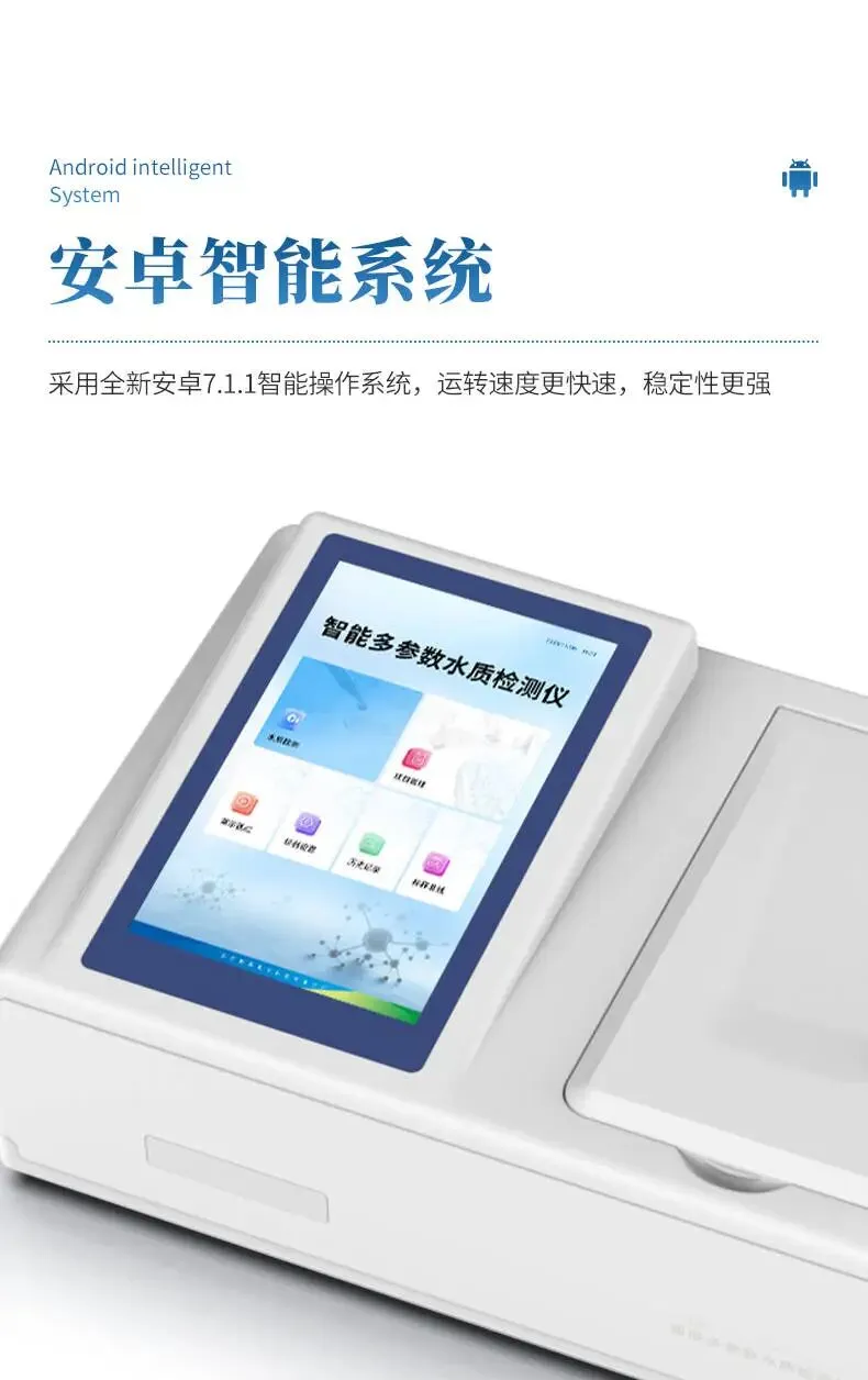 产品概述:HW-T100是一款基于Android智能操作系统的便携式多参数水质检测仪,配备10.1英寸高清晰度触摸屏,支持COD、氨氮、总磷、总氮等数十种指标检测。仪器内置智能数据分析系统,支持图表展示、数据导出、云端上传,并可选配双温区消解仪与大容量锂电池,适用于户外及现场快速检测。