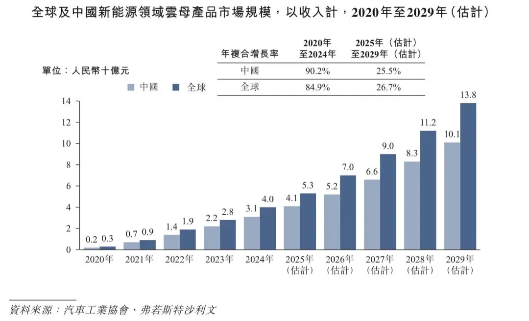 随着新能源应用范围不断扩大,云母产品在新能源领域的应用需求迅速增长。根据弗若斯特沙利文,全球及中国新能源领域云母产品的市场规模分别从2020年的人民币3亿元和人民币2亿元增长至2024年的人民币40亿元和人民币31亿元,2020年至2024年的年复合增长率分别为84.9%和90.2%。