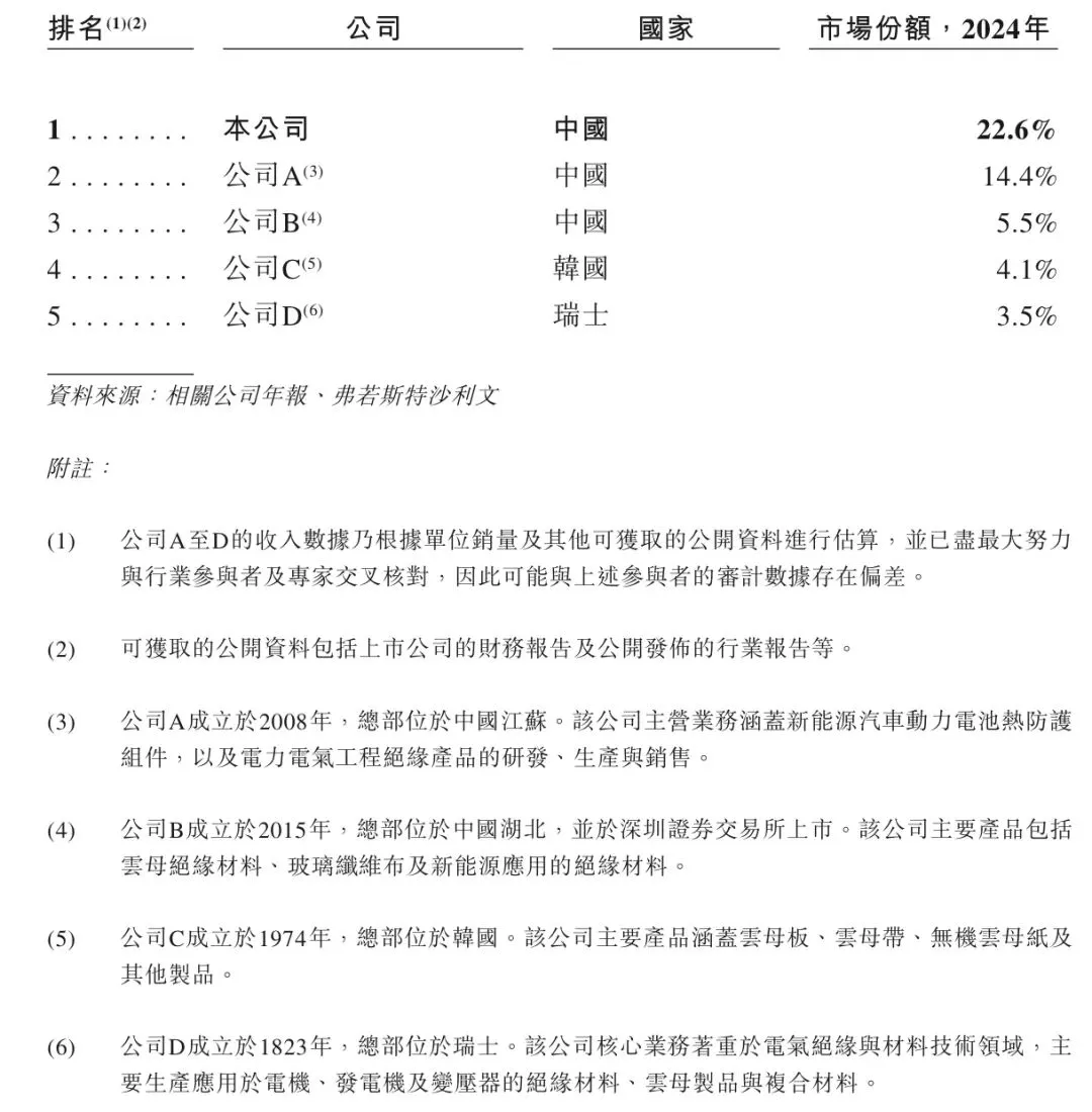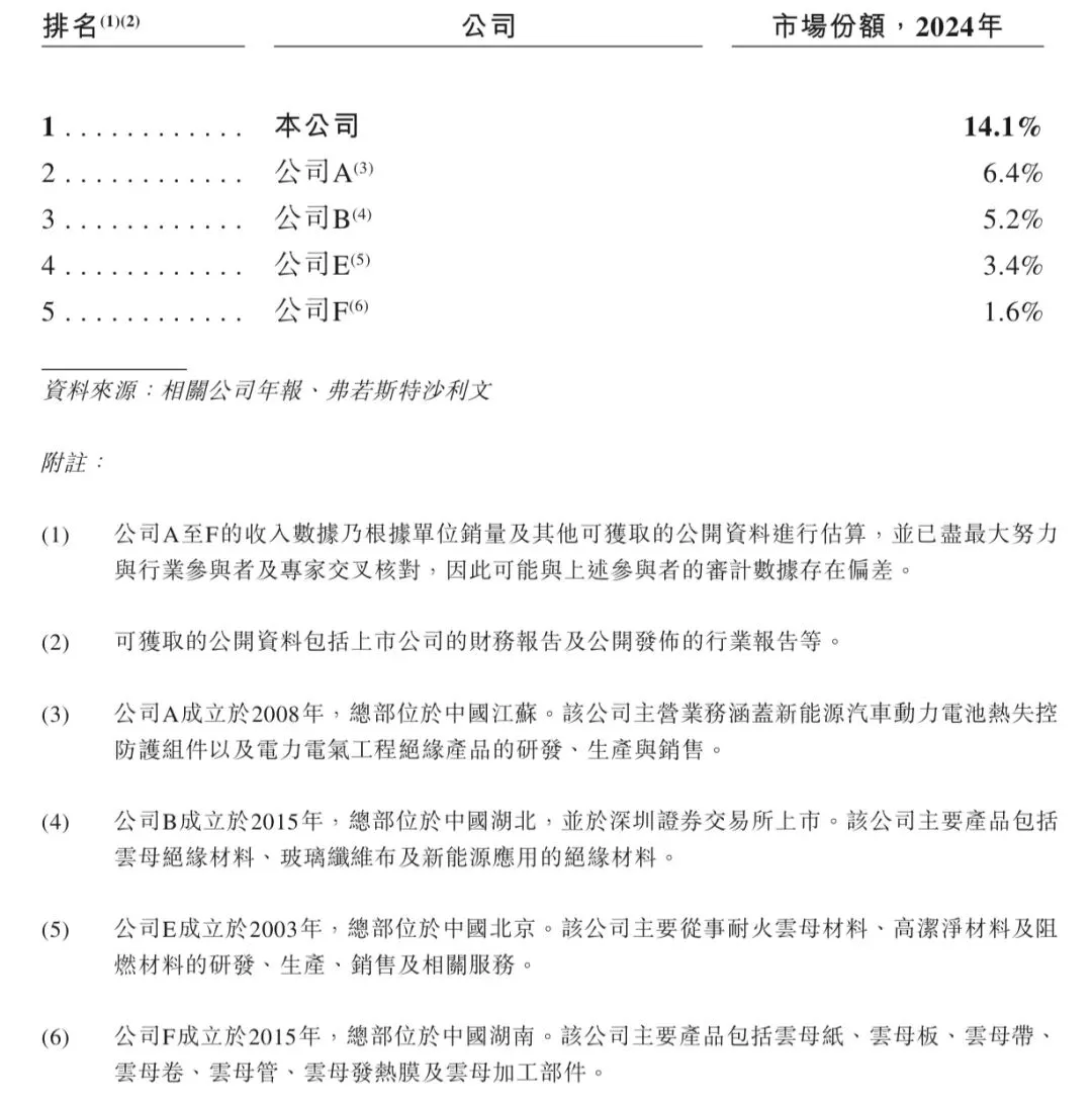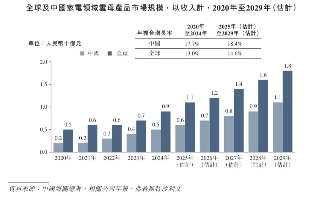 云母产品凭借其优异的电气绝缘性、阻燃性、耐热性及延展性,在家电产品领域的应用日益广泛,在家电产品中应用的渗透率逐步提高。根据弗若斯特沙利文的资料,2024年,按收入计,全球家电领域云母产品的市场规模达到了人民币9亿元,其中中国家电领域云母产品的市场规模达到了人民币5亿元,2020年至2024年全球和中国家电领域云母产品市场规模的年复合增长率分别为13.0%和17.7%。