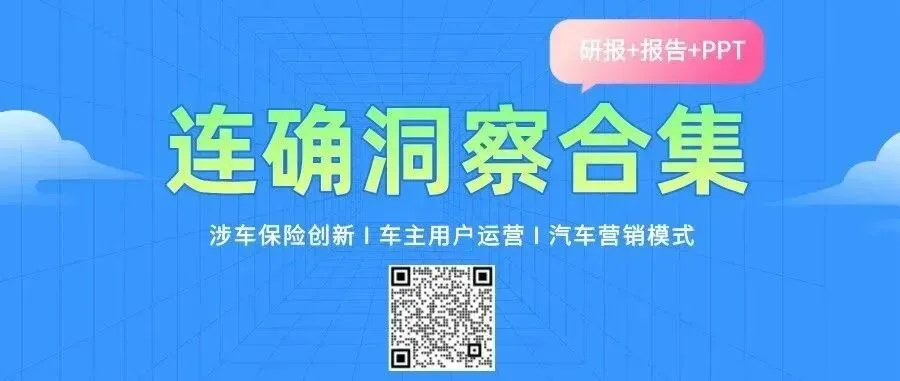 连确汇总有关于汽车保险经营创新、车主用户增长运营、汽车营销与商业模式三大主题的500+篇报告,每周四更新,敬请期待!