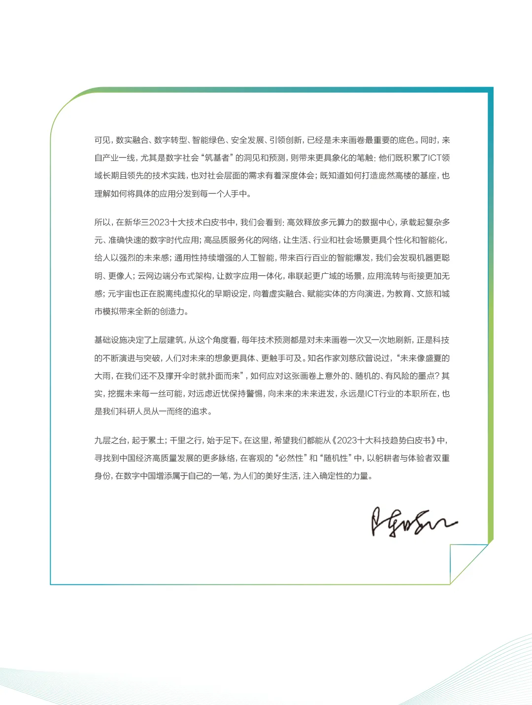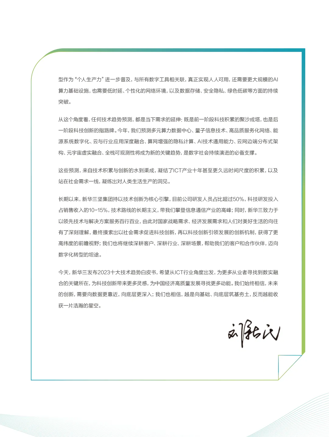 紫光股份旗下新华三集团正式对外发布《以远见,见未见——新华三2023十大技术趋势白皮书》(以下简称“白皮书”)。在数字技术不断演进与百行百业交融发展,技术迭代与产业应用融合创新的当下,新华三以引领业界的前瞻创想和深度创新,提出数据中心可组合架构、量子信息技术、高品质服务化网络、能源系统数字化、云与行业应用深度融合、算网增强的隐私计算、AI技术通用能力、云原生安全架构、虚实融合技术、全栈可观测性将成为最值得关注的十大数字技术演进趋势。循着新华三的行业洞察和技术预测,把握前沿科技的发展脉络,一个由数字技术驱动的未来社会图景正在展开。