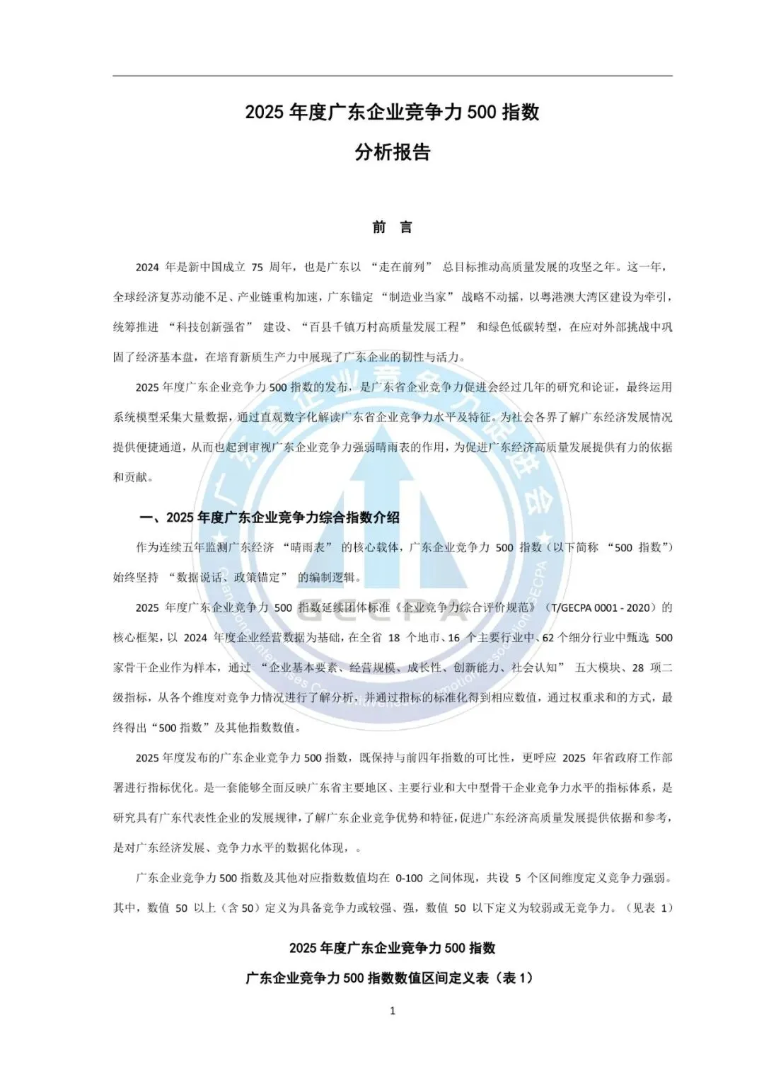 发布《2025 年度广东企业竞争力 500 指数分析报告》全文