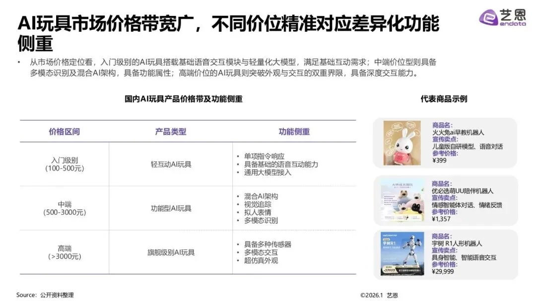 中端(500–3000元):多模态识别、混合AI架构、拟人表情;