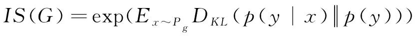 IS是对生成图像的清晰度和多样性衡量,如式(7):