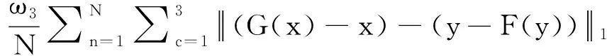 式中:F(G(x))为生成的重构图像,与x相似,下标1为L1范数。F(G(x))重构了源域的图像减少与源域图像的差距,来弥补了使用GAN风格迁移过程中内容发生变化的缺陷。加入L1范数防止过拟合出现。
