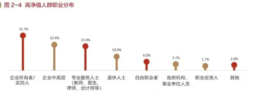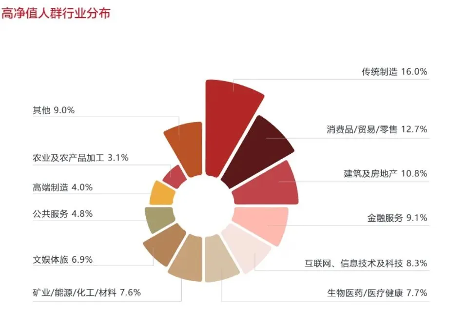 传统行业仍是高净值人群的财富主力,现代服务业与先进制造业构成重要补充,占29.1%。行业分布呈现多元协同格局 。