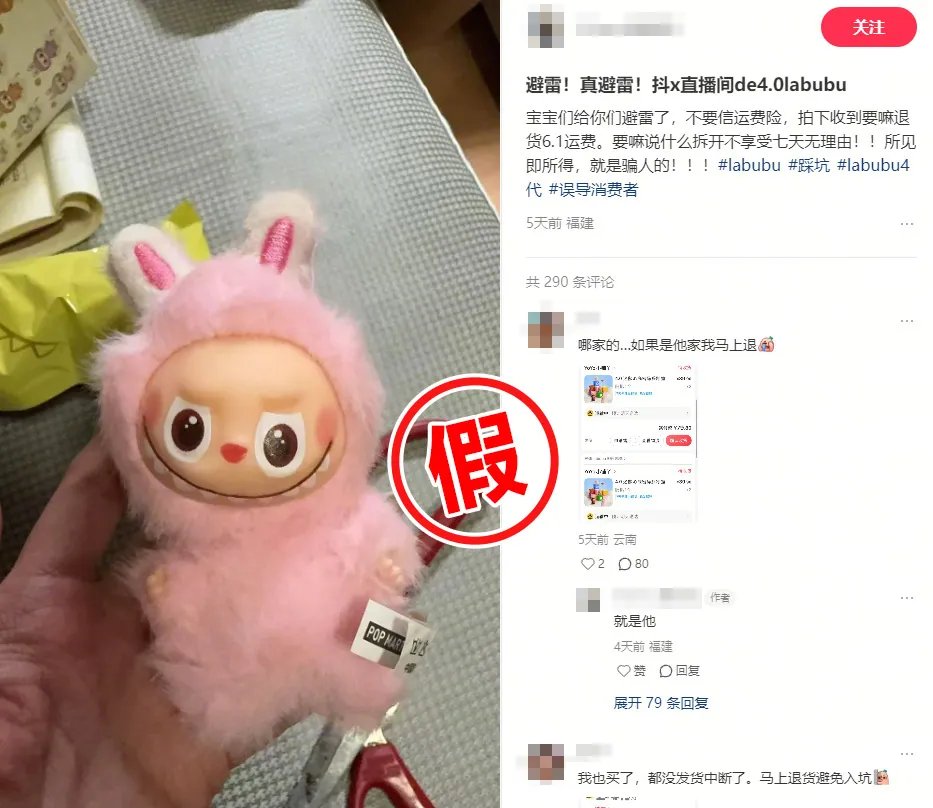 ❌假泡泡玛特,经平台抽检为假冒商品 | |