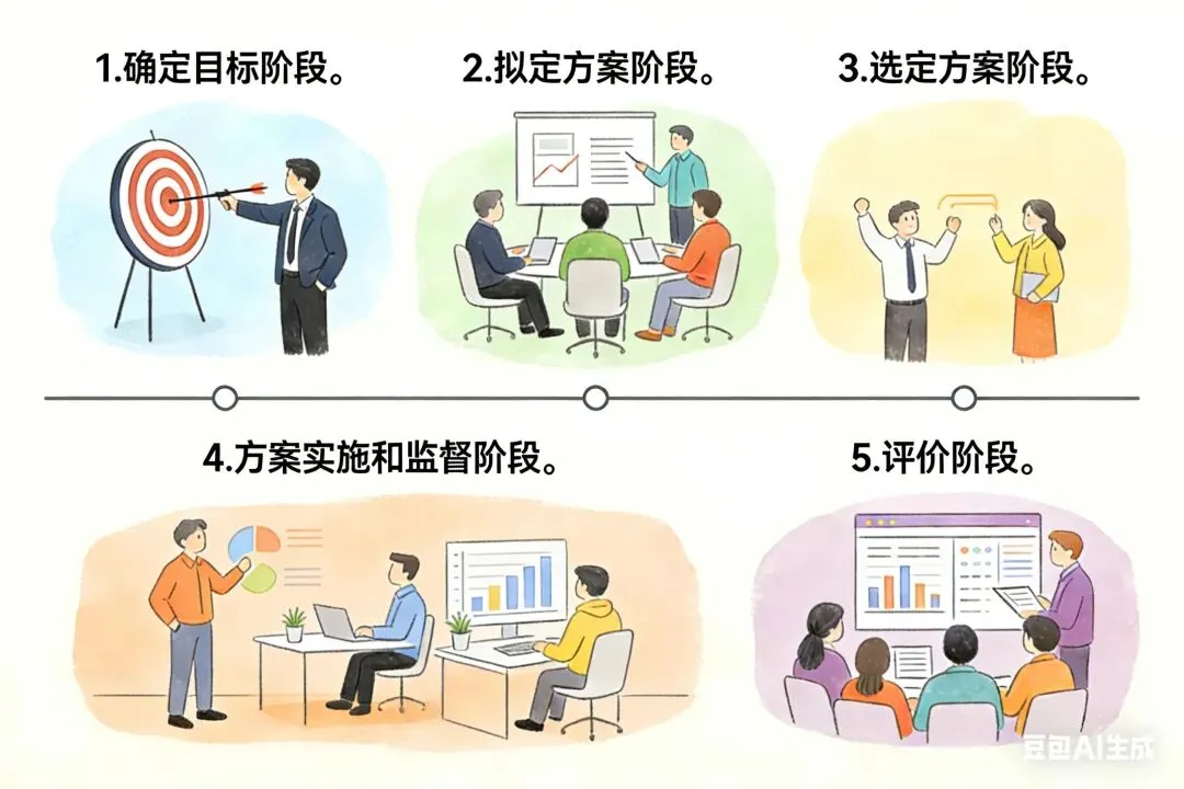 概念:企业通过内部条件和外部环境的调查研究、综合分析,运用科学的方法选择合理方案,实现企业经营目标的整个过程。