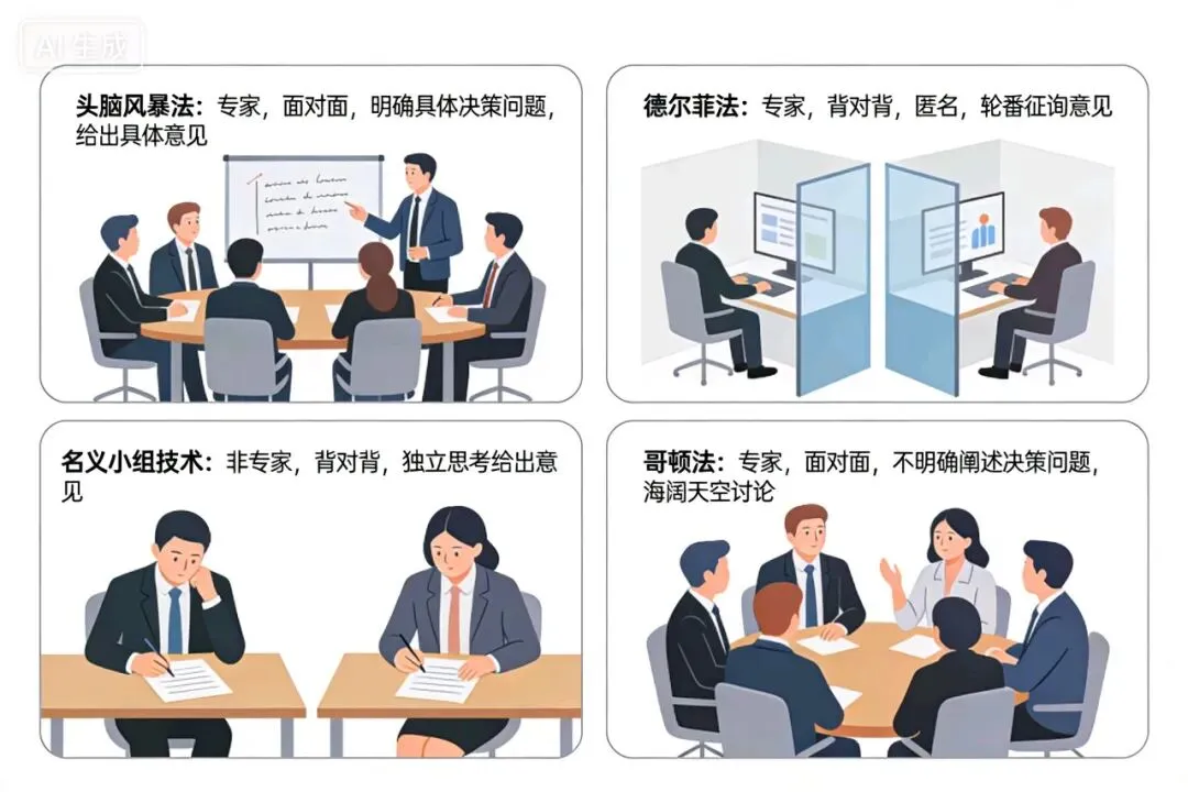 3.名义小组技术:非专家,背对背,独立思考给出意见