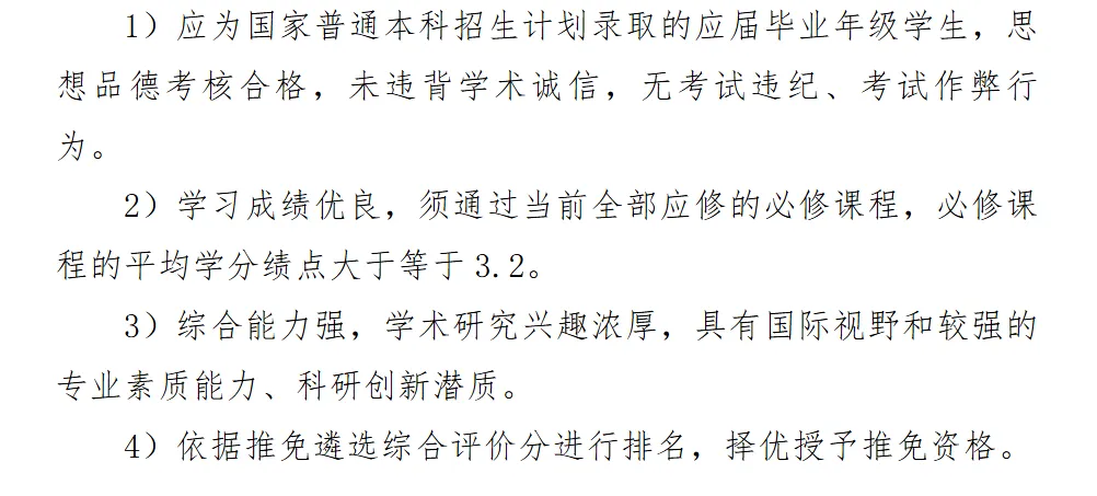 必修课程平均学分绩点在专业排名前30%(不包含本硕连读培养学生进行的专业排名)。