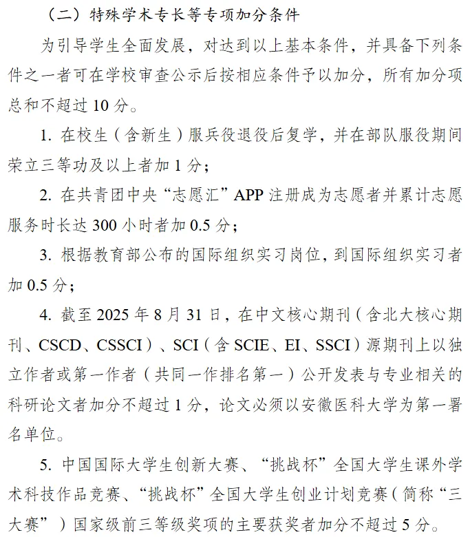 对达到基本条件,并具备下列条件之一者可按相应条件予以特殊学术专长等专项加分,所有加分项总和不超过5分。