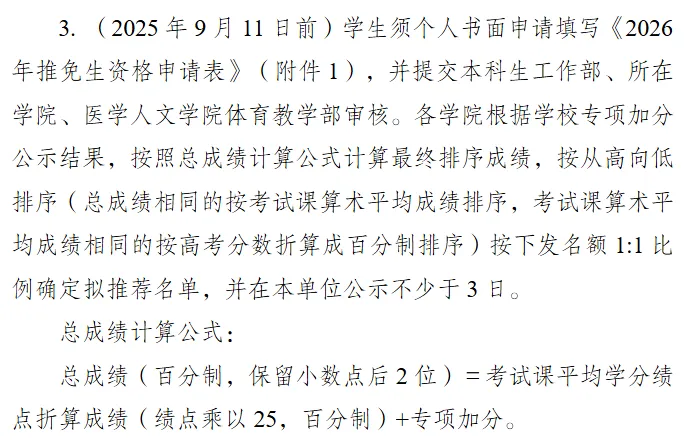 学院根据学校专项加分公示结果,按照总成绩计算公式计算最终排序成绩。
