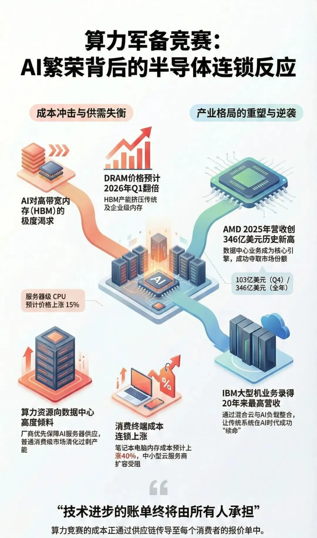 从ChatGPT宕机到DRAM价格翻倍,从AMD业绩爆发到IBM大型机复兴,这些看似独立的新闻碎片拼出一幅清晰的图景:全球科技产业正在经历一场"算力军备竞赛",而所有人都在为这场狂欢买单。