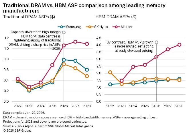 据The Register报道,DRAM价格预计在2026年第一季度接近翻倍。S&P Global的分析指出,AI训练和推理对高带宽内存(HBM)的疯狂需求,正在挤压传统DRAM的产能供应。
