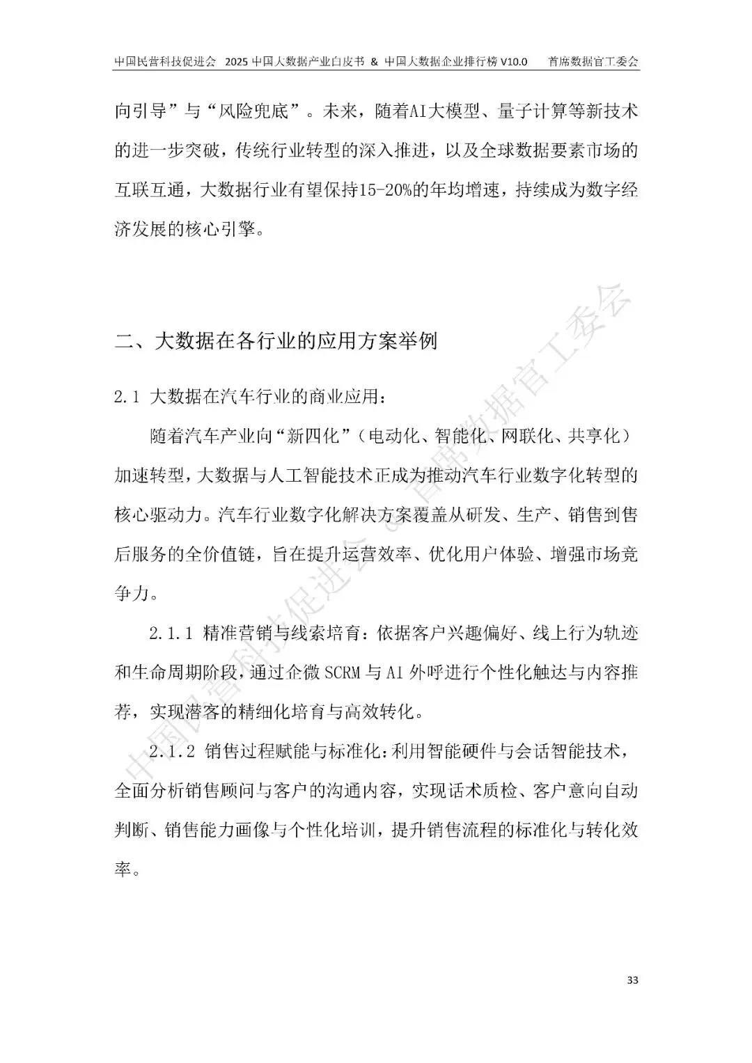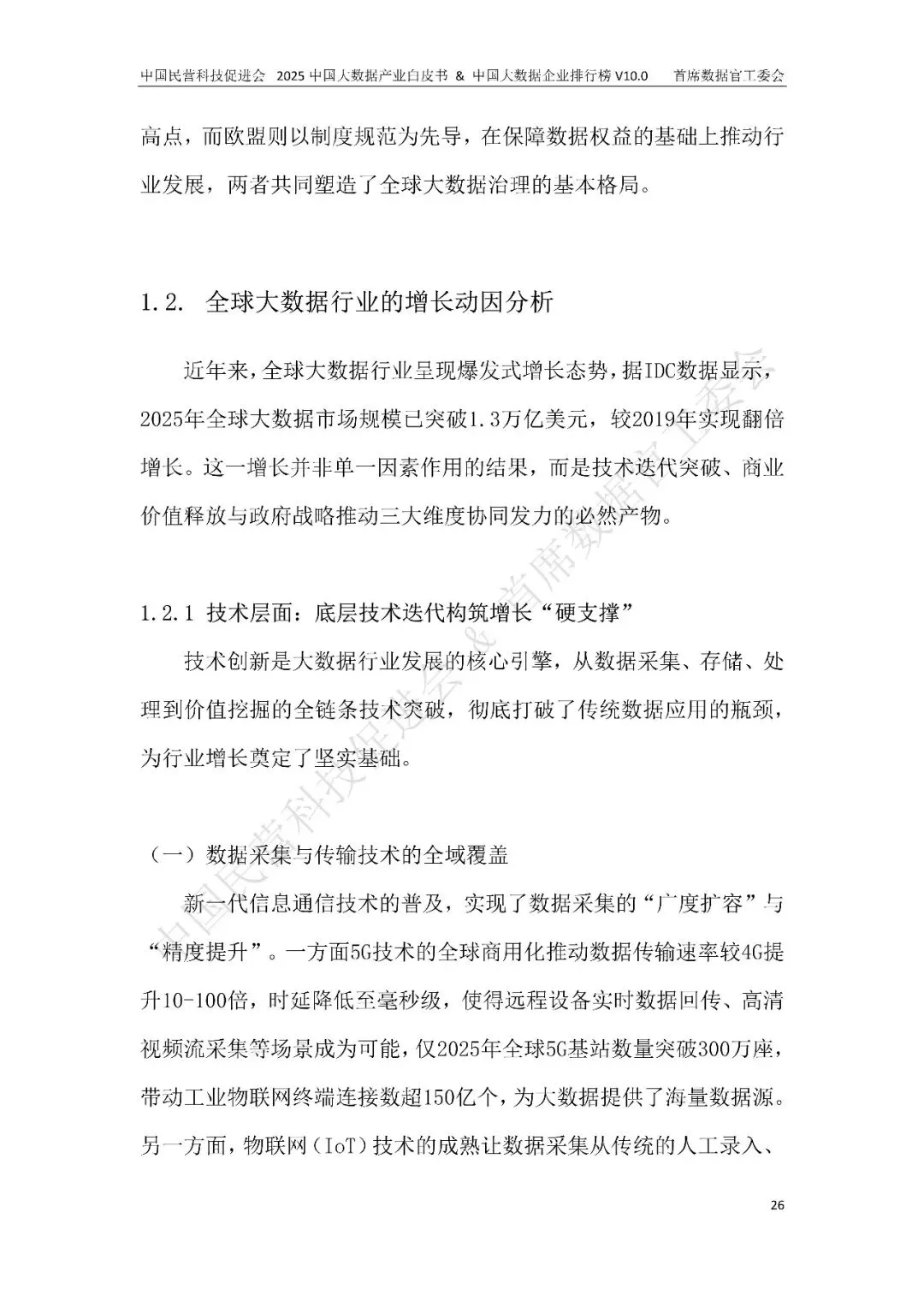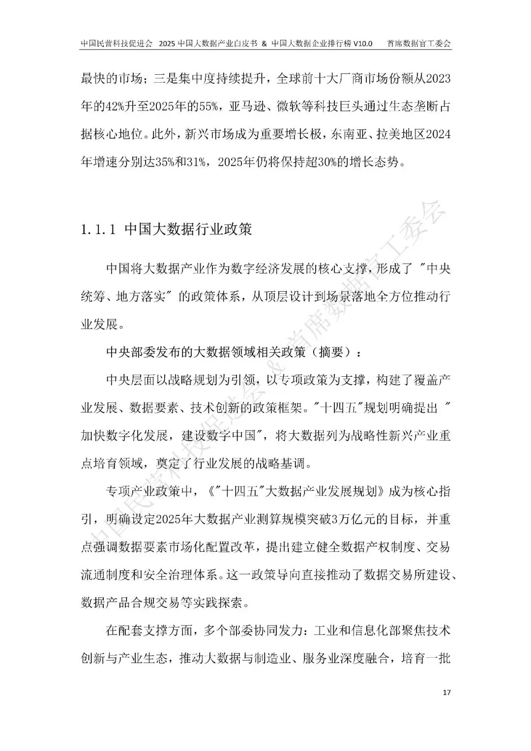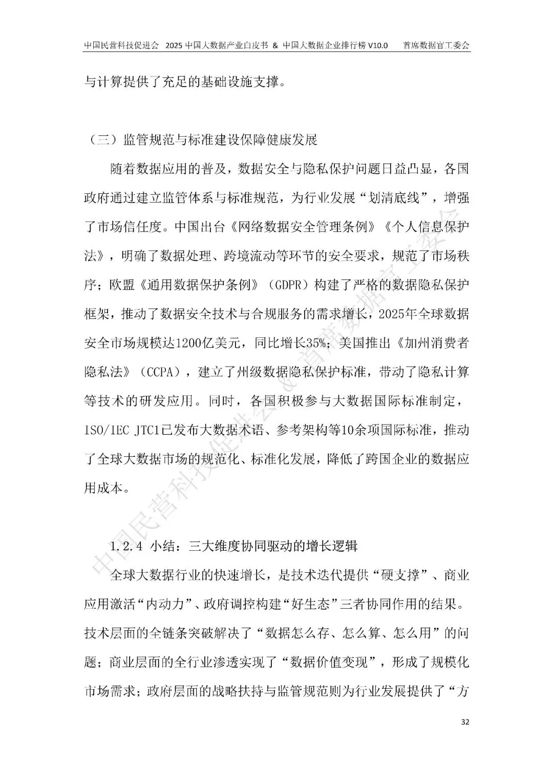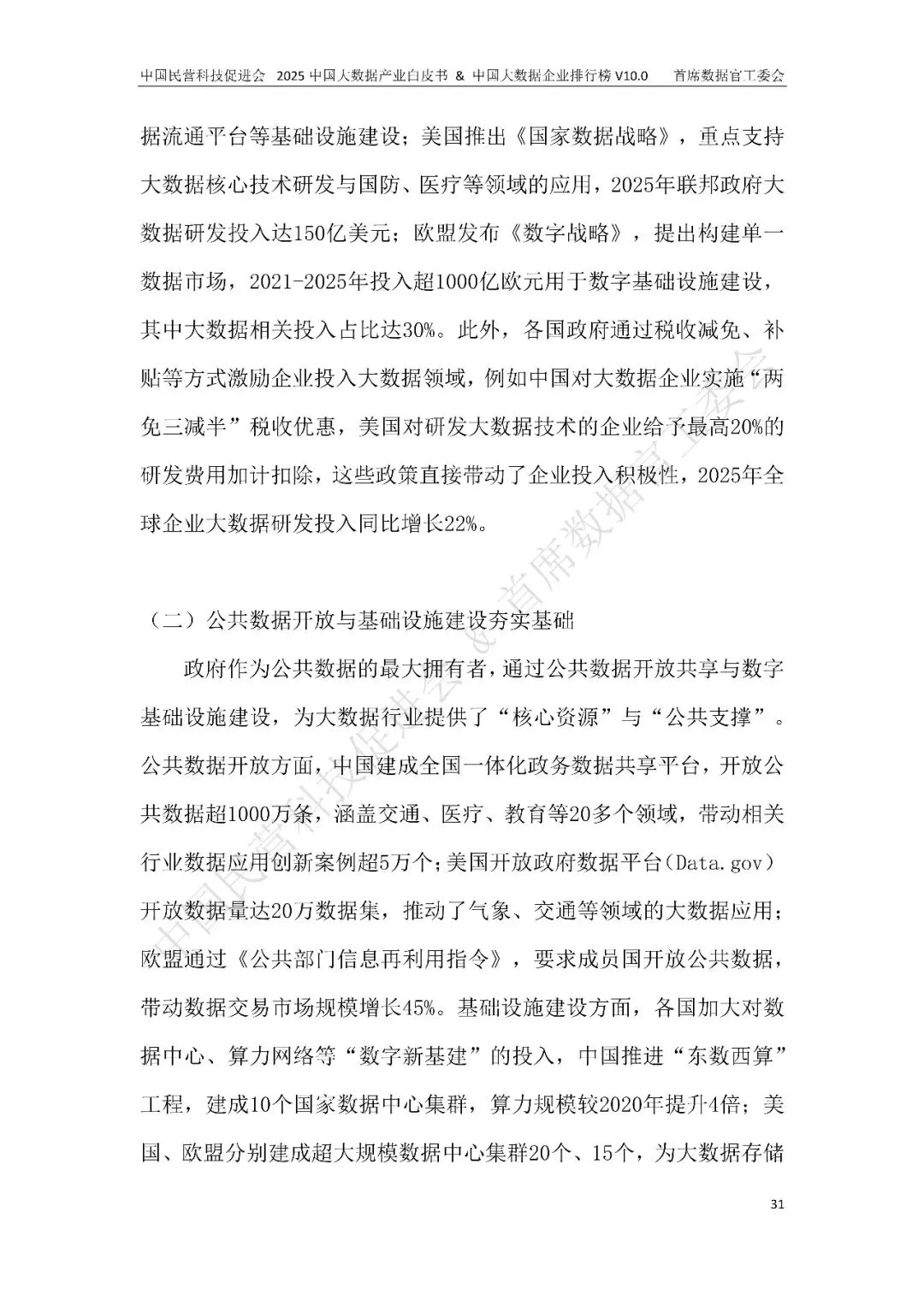 《2025中国大数产业白皮书》是由中国民营科技促进会联合中国技术情报监督协会、北京大数据协会、山东省大数据协会、四川省大数据产业联合会、深圳市大数据产业协会、丝路数字经济产业研究院、天津数据产业研究院和中科智库教育发展研究中心等机构联合编制。