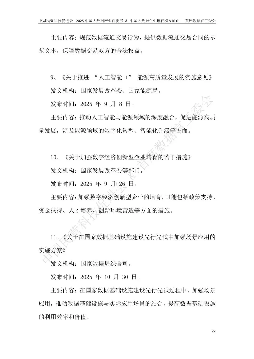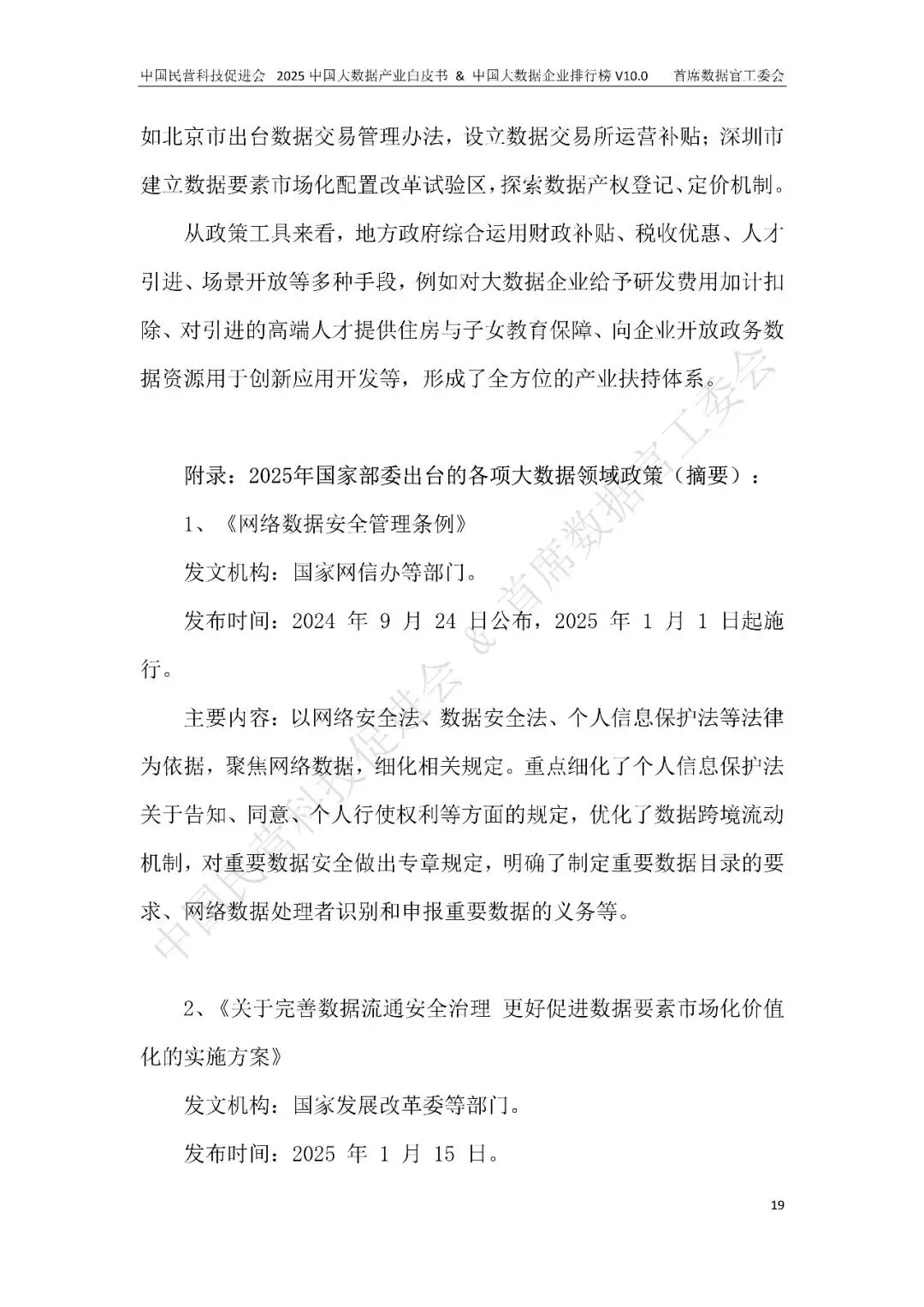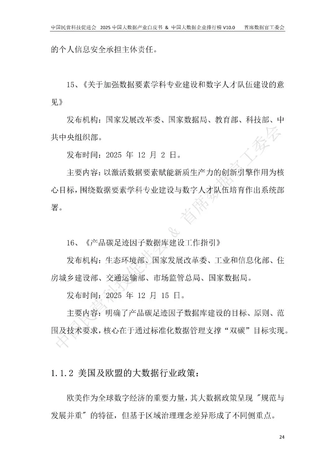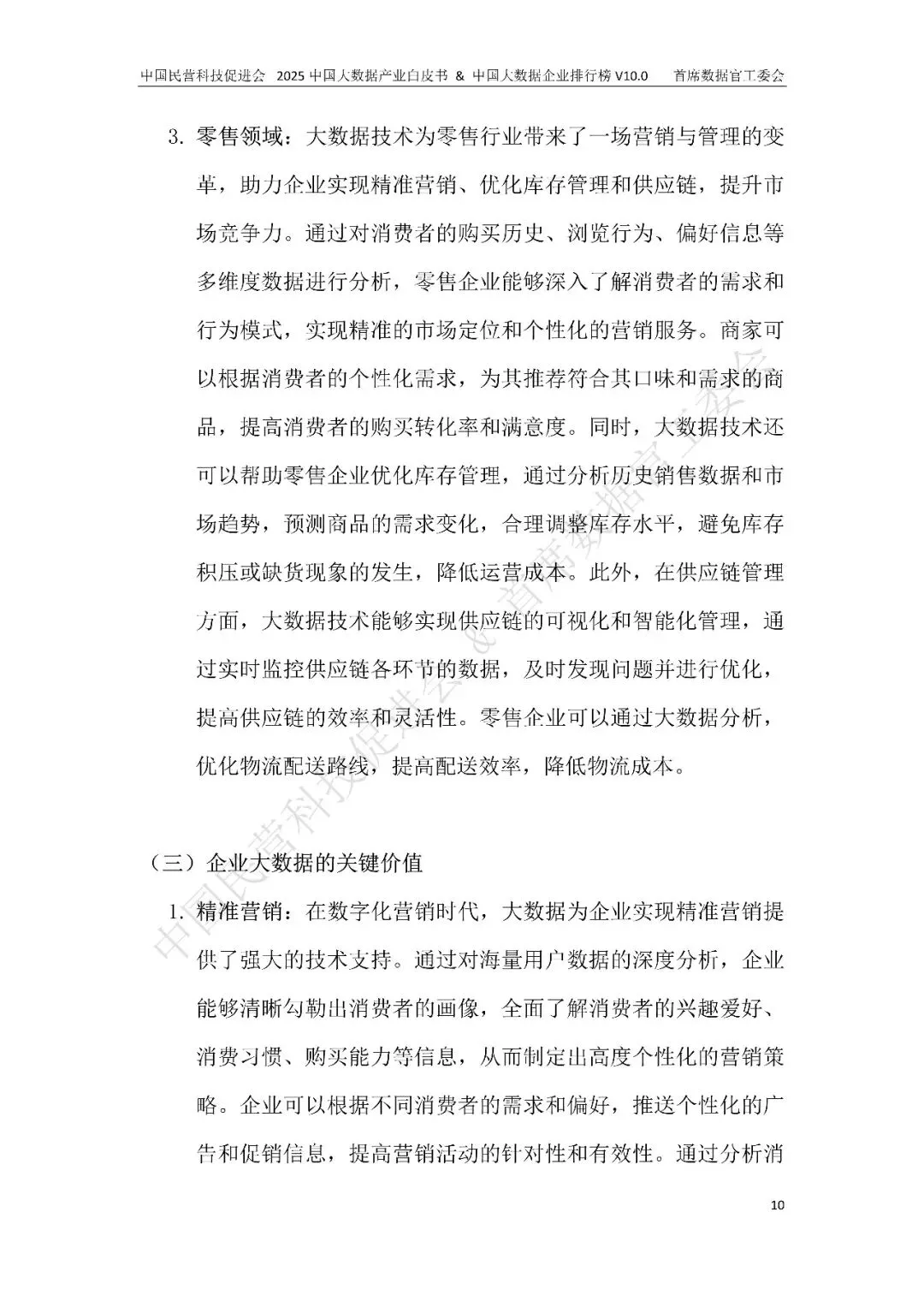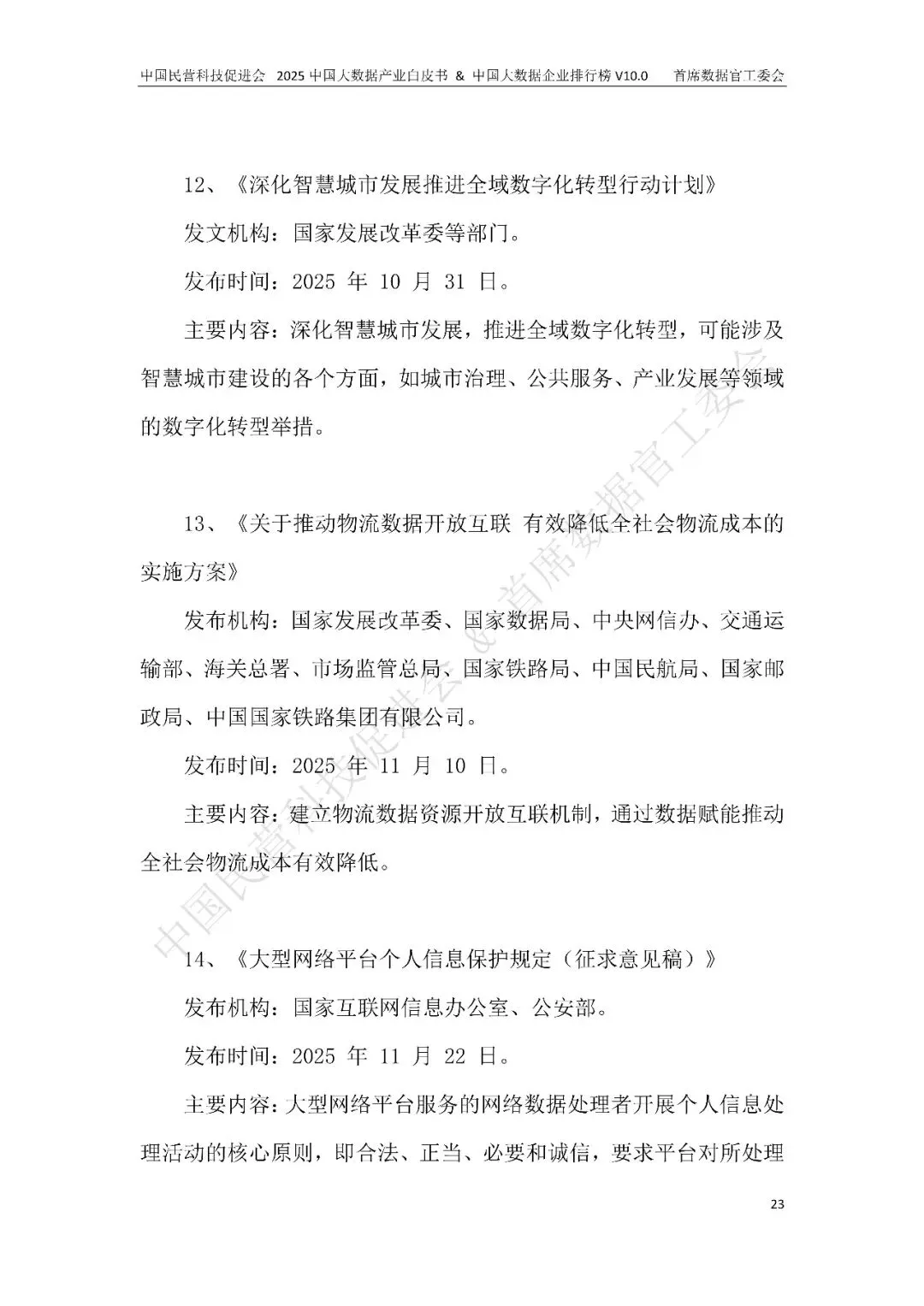 《2025中国大数产业白皮书》是由中国民营科技促进会联合中国技术情报监督协会、北京大数据协会、山东省大数据协会、四川省大数据产业联合会、深圳市大数据产业协会、丝路数字经济产业研究院、天津数据产业研究院和中科智库教育发展研究中心等机构联合编制。