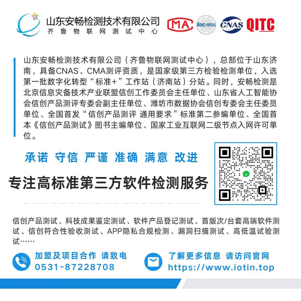 多年来,安畅检测始终秉持“承诺、守信、严谨、准确、满意、改进”的服务理念,构建全流程标准化服务体系,确保每一项服务专业合规:需求沟通→测试方案定制→合同签订→环境准备→测试执行→报告交付。作为具备CMA/CNAS国家双重资质认可的专业第三方检测机构,我们深耕行业多年,积累了丰富的复杂系统测试经验,业务覆盖金融、医疗、教育等关键领域。针对不同行业的软件特性与测试需求,我们可提供定制化、可落地的解决方案,助力客户软件产品与系统实现安全、稳定、高效运行。如有软件检测需求,欢迎随时垂询!