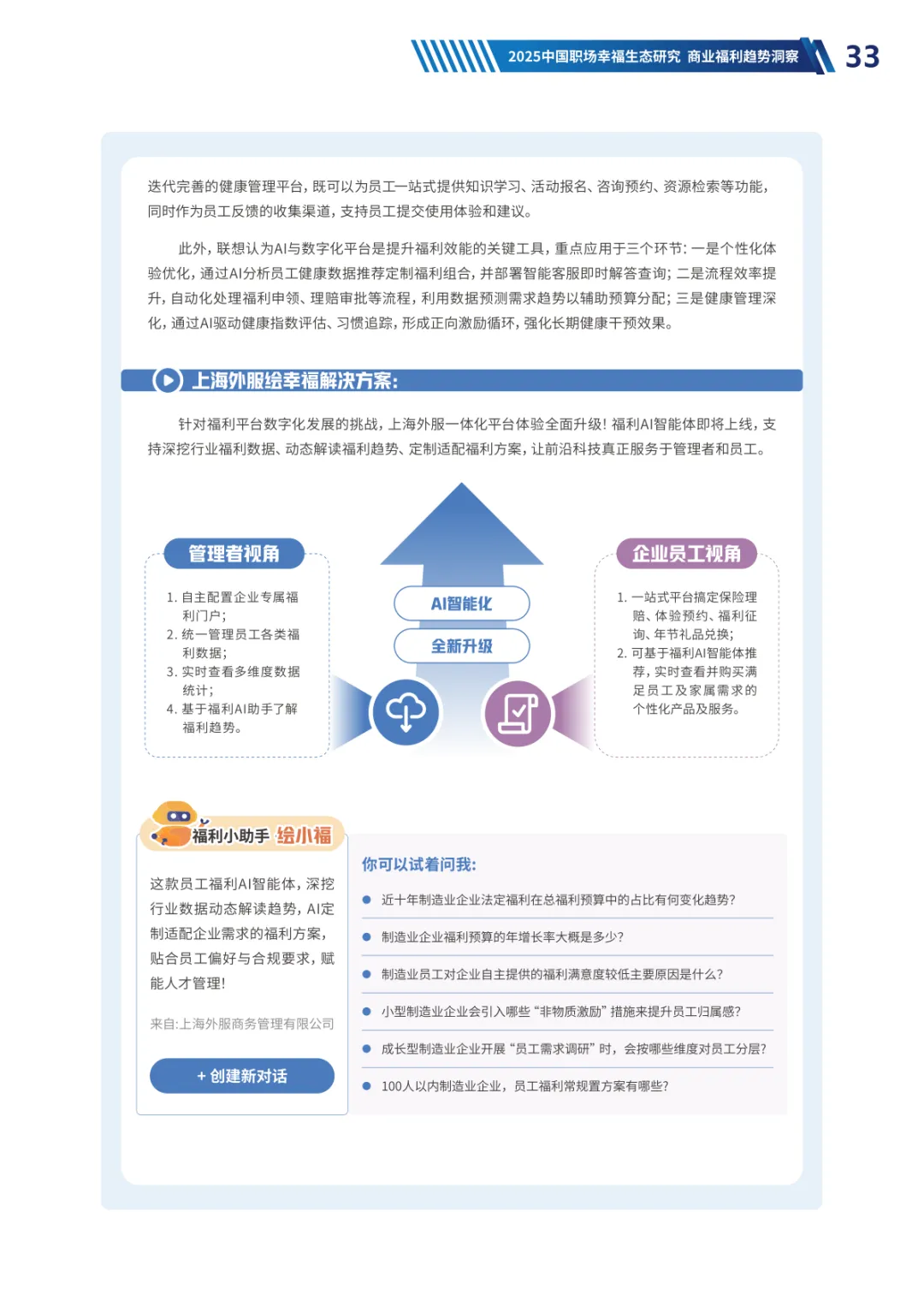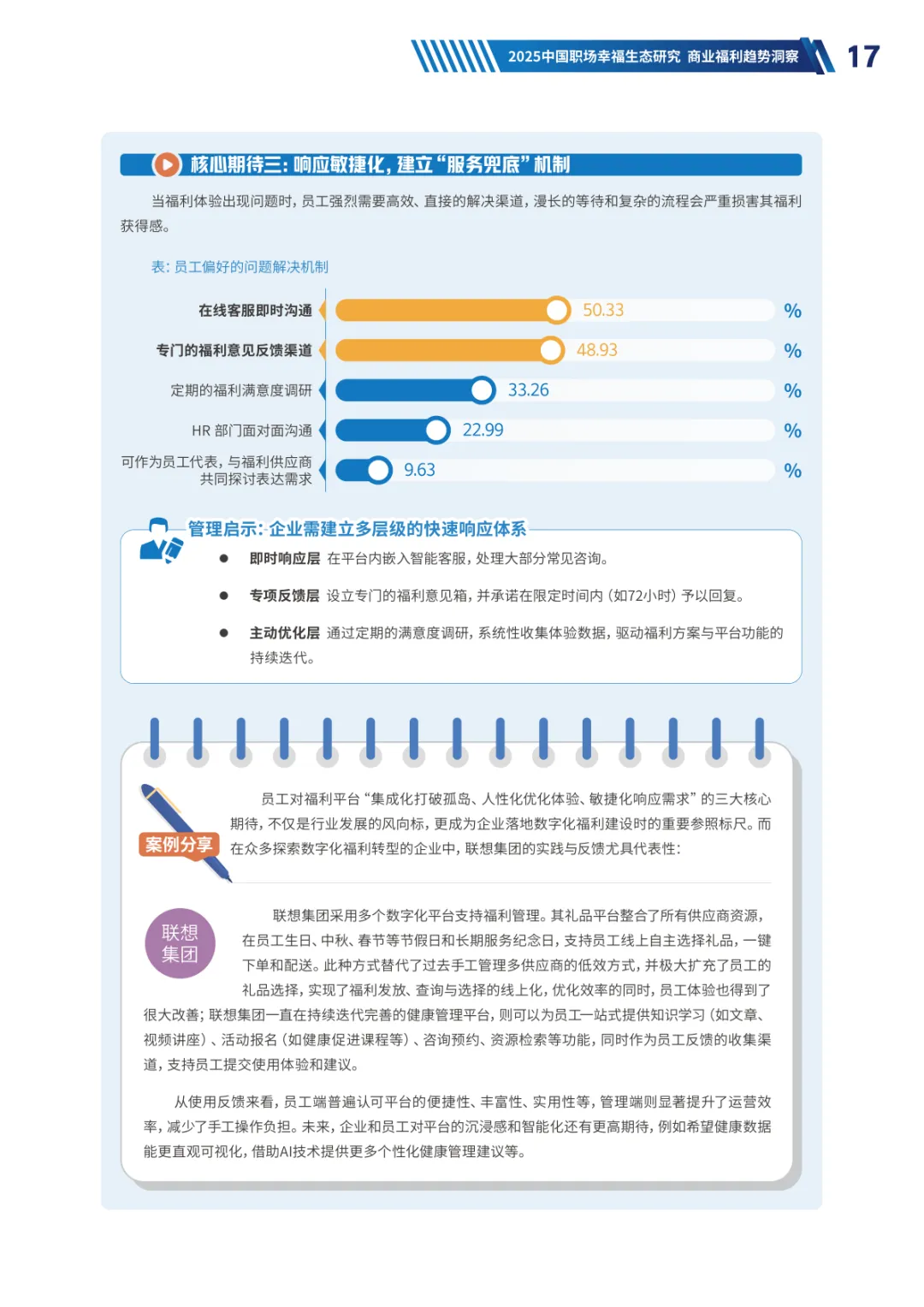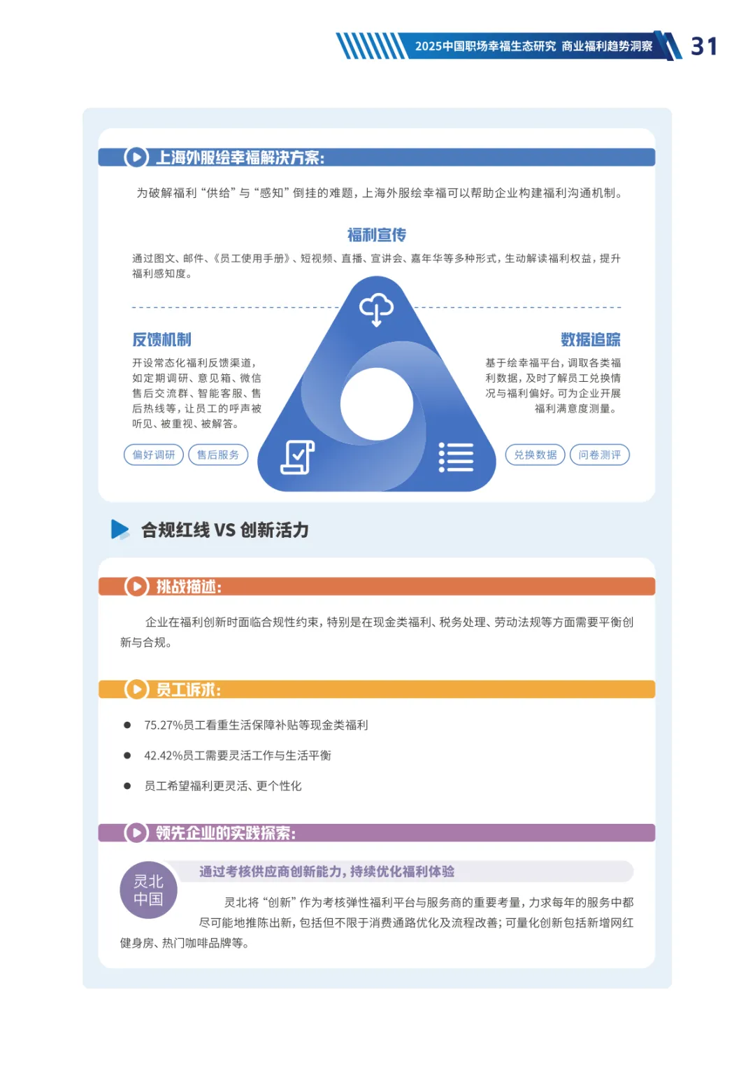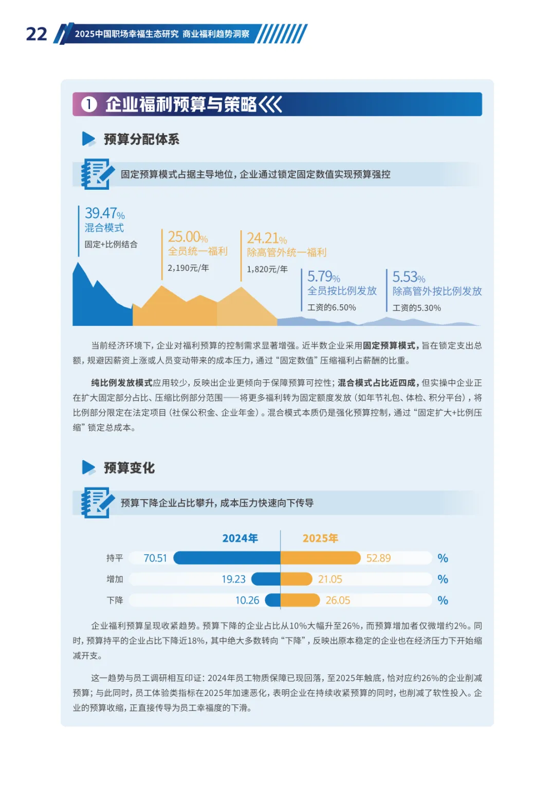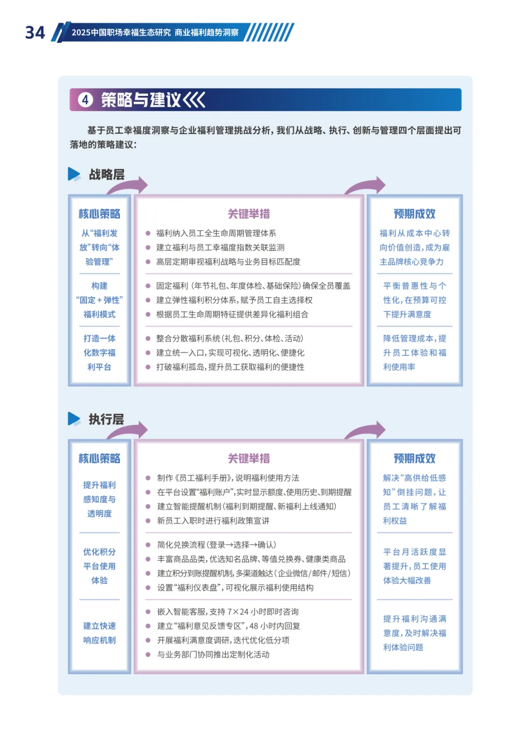 导读:经济承压、Z 世代崛起与价值观转变三大趋势,重塑当下职场生态。员工幸福度连续两年下滑,焦虑从物质层面转向对未来的信心缺失,体验感知类维度降幅显著。不同年龄、行业、企业性质的员工幸福度呈现差异,30-40 岁群体因处于职业价值回报期幸福感最高,金融保险行业凭借高投入保持领先。员工福利需求已从物质保障转向情感归属与个性化体验,归属感和自主选择权成为核心诉求。不同年龄层偏好分化明显,青年员工重视工作生活平衡,30 岁以上群体聚焦生活保障、健康管理与储蓄规划。数字化福利平台需满足集成化、人性化、敏捷响应三大核心期待,破解当前供需错配、感知度低等问题。企业福利预算趋紧,需构建 “固定 + 弹性” 模式,通过一体化数字平台、差异化配置与低成本高感知设计优化体验。从标准化供给转向个性化适配,从物质保障转向情感联结,从分散发放转向一体化体验,成为企业福利管理破局的关键方向,助力提升员工满意度与组织凝聚力。