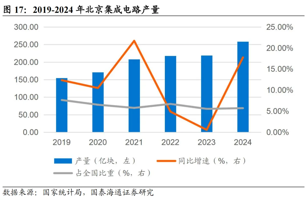 北京“十五五”规划建议明确提出,加快集成电路、机器人和智能制造、智能网联汽车、空天技术等战略性新兴产业发展。其中,集成电路被列为首位。从规模看,2024年北京集成电路产量达258.1万块,同比增长17.8%,占全国比重达5.7%。