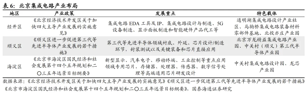 从布局看,北京集成电路产业主要集聚于经开区、海淀区和顺义区。其中,经开区作为全国集成电路产业高地的优势日益突出,该区重点布局制造、装备、先进封装制造以及特色集成电路设计等。2024年,经开区集成电路产业产值突破900亿元,同比增长超40%。