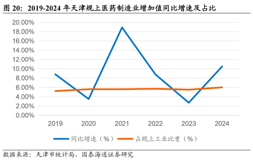 “1+3+4”现代工业产业体系中,生物医药产业被列为4个新兴产业中之首。2025年1 月,天津印发《天津市全链条支持生物医药创新发展的若干措施》,围绕加强创新策源能力建设、推动临床研究高水平发展、加速创新药械注册审批进程、促进创新药械临床应用、创新驱动提升产业能级、持续优化产业发展生态等六方面提出25条具体措施。天津“十五五”规划建议在“大力发展先进制造业”部分明确提出“壮大新兴产业规模,支持新技术新产品新场景大规模应用,加快推动……生物医药……等成长为支柱产业”。