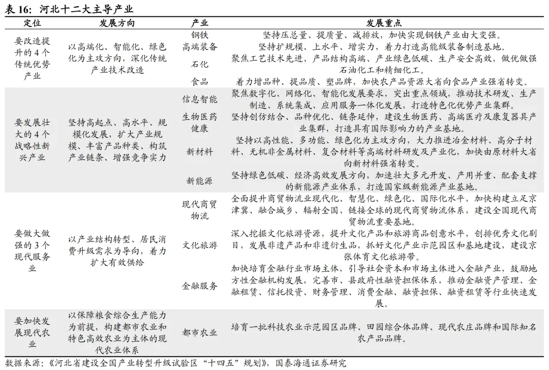 2021年11月,河北印发《河北省建设全国产业转型升级试验区“十四五”规划》,提出增强十二大主导产业的支撑地位,构筑先进制造业为核心、现代服务业和现代农业为两翼的现代产业体系。