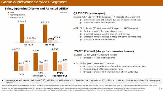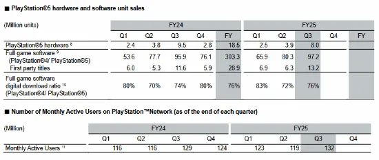 索尼公布了2025财年第三季度财报,本文仅摘录其游戏相关部分如下: