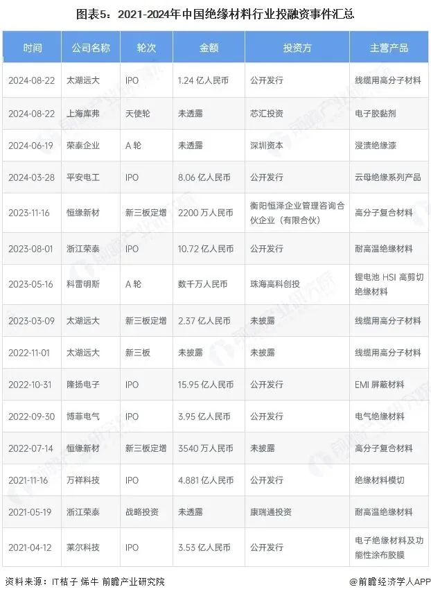 2021-2024年,我国绝缘材料行业的主要投融资事件如下: