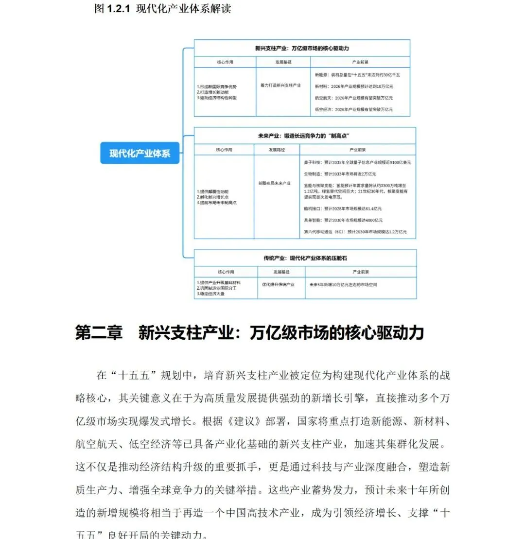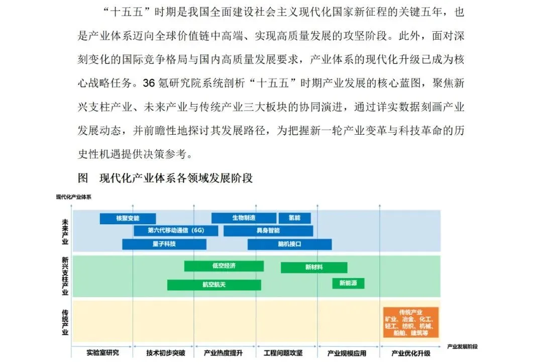 “十五五”时期是我国全面建设社会主义现代化国家新征程的关键五年,也是产业体系迈向全球价值链中高端、实现高质量发展的攻坚阶段。此外,面对深刻变化的国际竞争格局与国内高质量发展要求,产业体系的现代化升级已成为核心战略任务。近期发布了《“十五五”时期重点产业前瞻与发展路径研究》,系统剖析“十五五”时期产业发展的核心蓝图,聚焦新兴支柱产业、未来产业与传统产业三大板块的协同演进,通过详实数据刻画产业发展动态,并前瞻性地探讨其发展路径,为把握新一轮产业变革与科技革命的历史性机遇提供决策参考。
