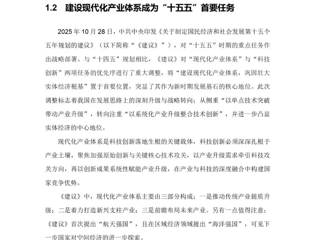 建设现代化产业体系成为"十五五"首要任务
