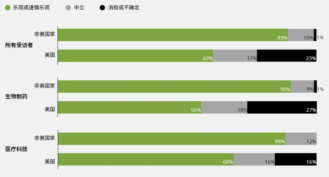 尽管超过75%的生物制药与医疗科技行业受访高管对企业来年的财务前景抱有信心,但仅41%的受访者对全球经济的健康状况感到乐观,欧洲和亚洲高管信心高于美国同行。