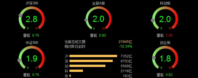 今日成交额2.19万亿,比上个交易日-0.31万亿。