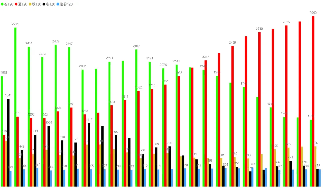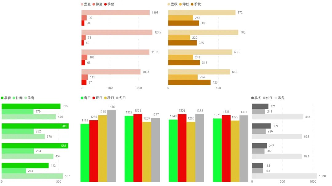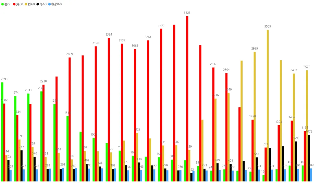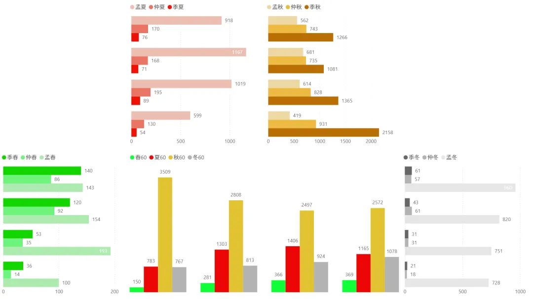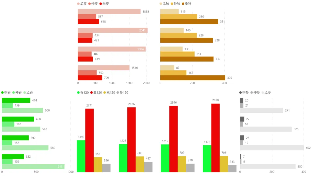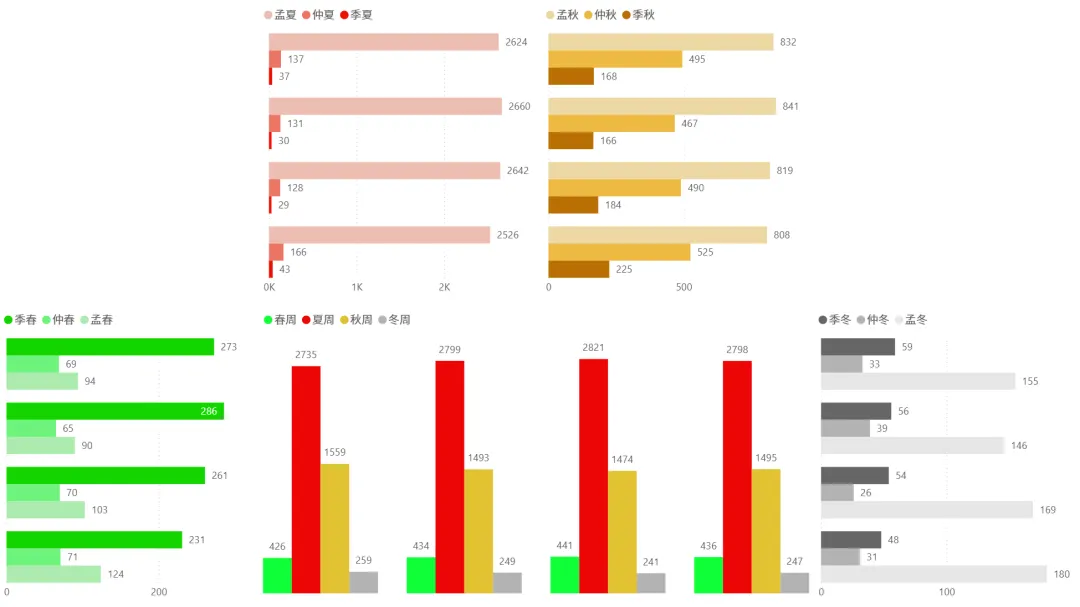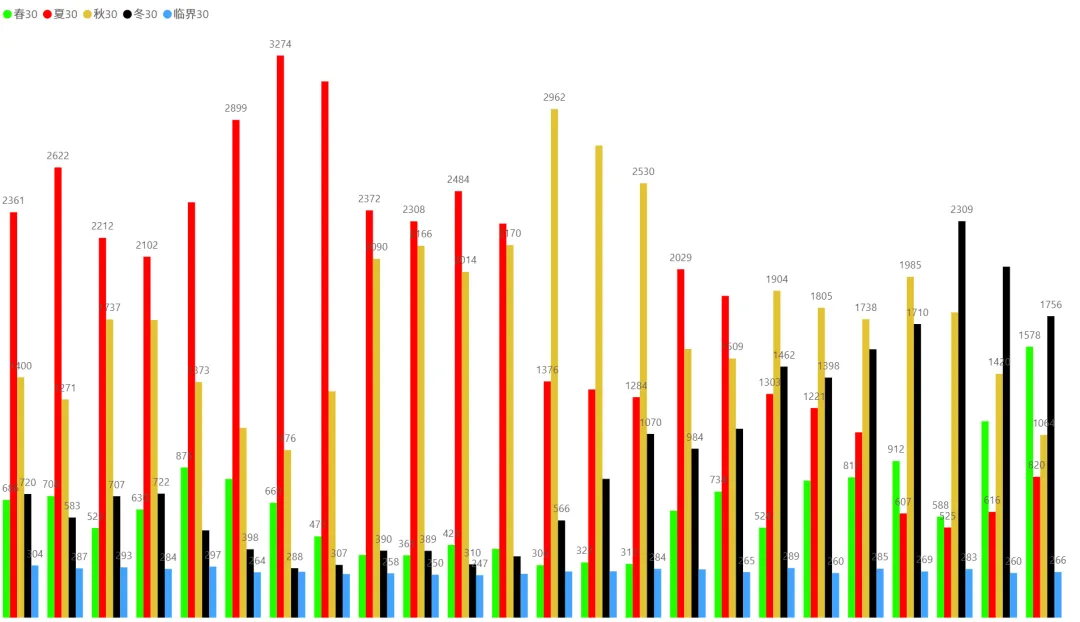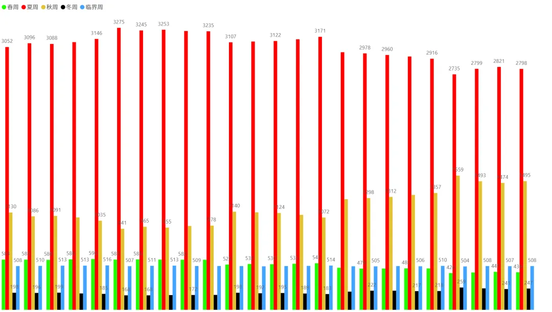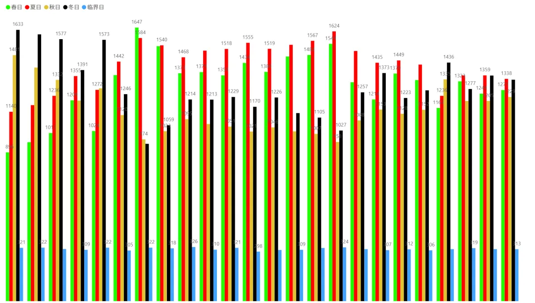 2、各时间周期四季分布趋势(1月5日~2月5日):