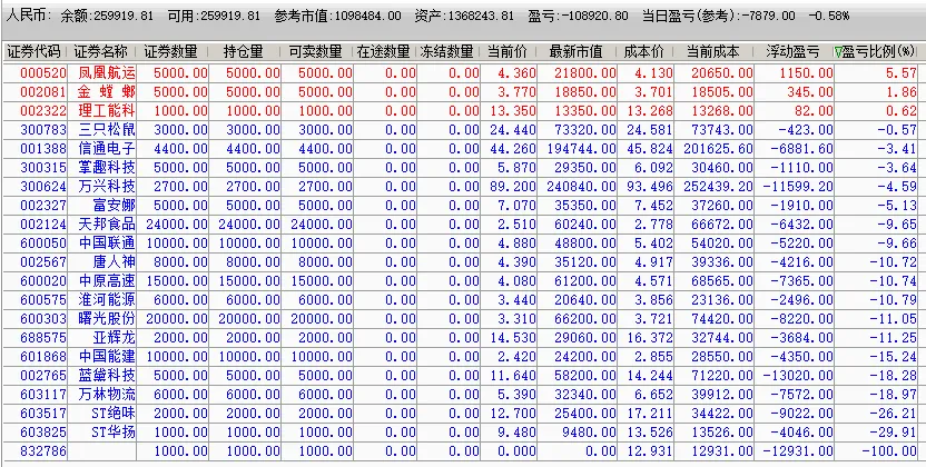 根据上个交易日复盘标的及今日盘中量化指标预警操作,目前持仓如下: