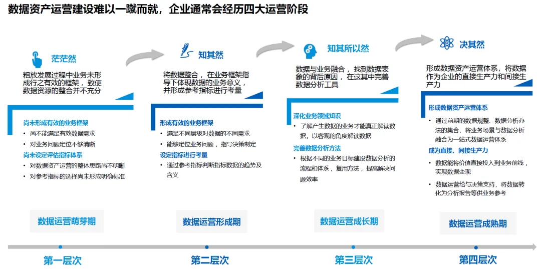 企业数据资产运营难以一蹴而就,通常经历四个阶段: