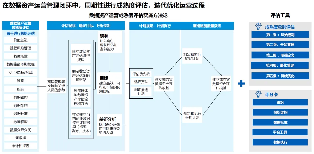 数据资产运营需建立闭环的成熟度评估机制,迭代优化运营过程。评估实施流程包括:
