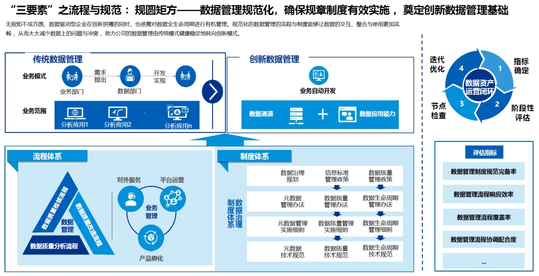 无规矩不成方圆,规范化的流程与制度是数据资产运营的保障,确保数据全生命周期管理有序开展。