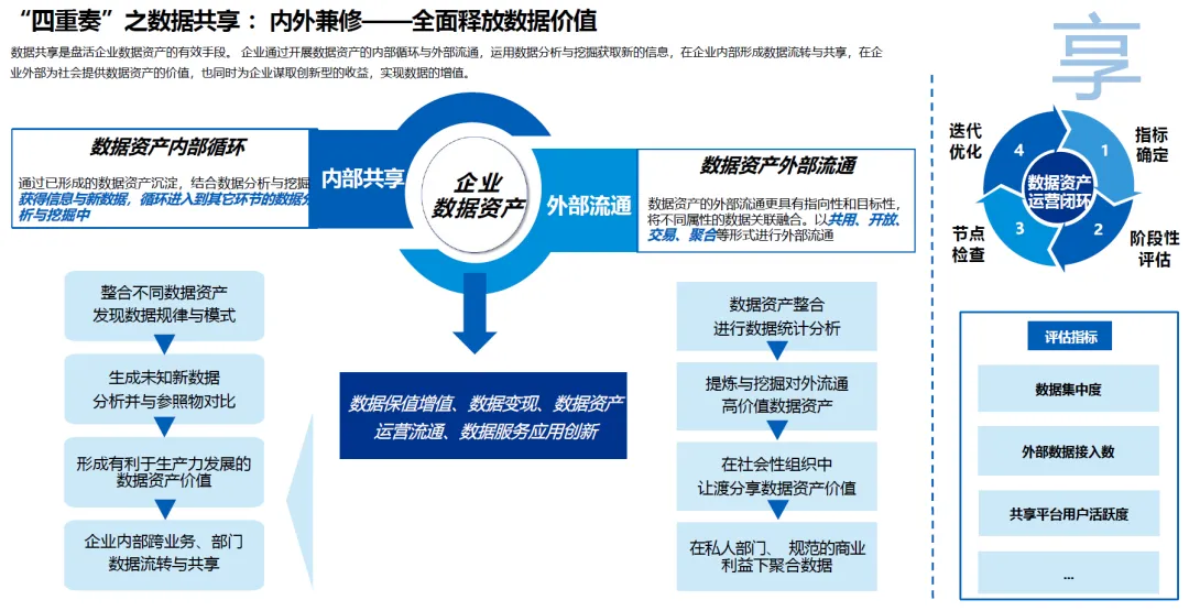数据共享是盘活企业数据资产的有效手段,通过内外部流通实现数据增值。