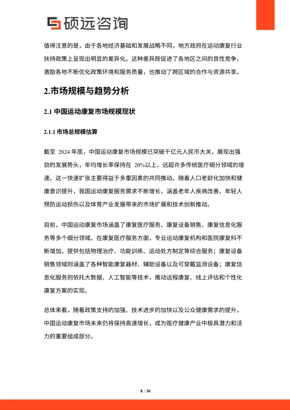 - 体育产业带动:职业体育、校园体育和大众健身的蓬勃发展,直接拉动了对科学康复的需求。
