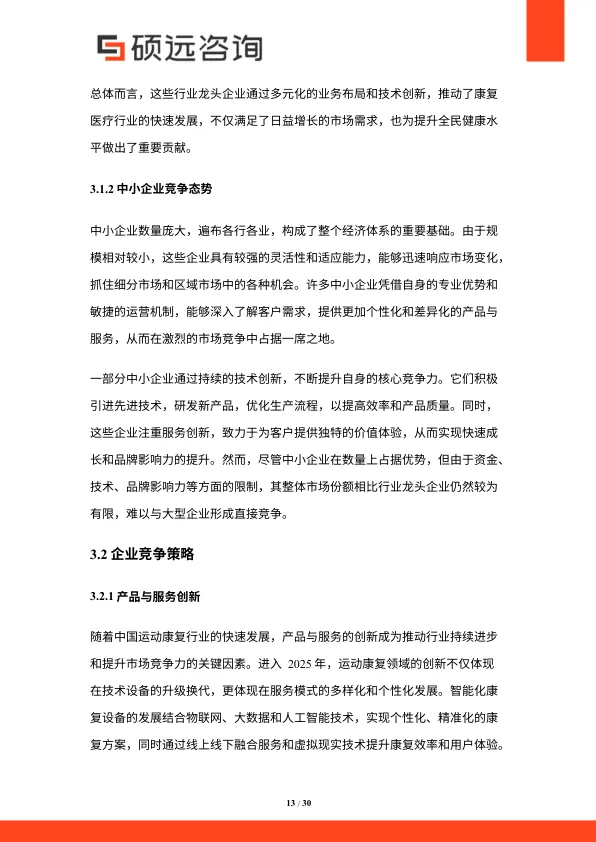 - 竞争主体:包括专业康复医疗机构、体育科研单位、私人工作室、健身俱乐部及互联网平台,竞争日趋激烈。