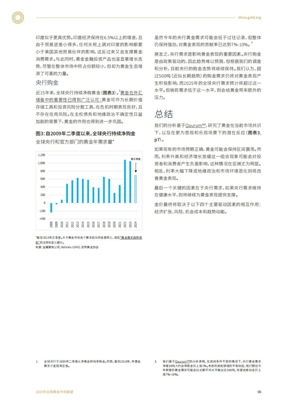 2025年量化支撑:若购金量维持500吨+(长期趋势线),Qaurums模型显示每增30吨约推升金价1%;若达800吨(较趋势+300吨),潜在涨幅7%-10%。