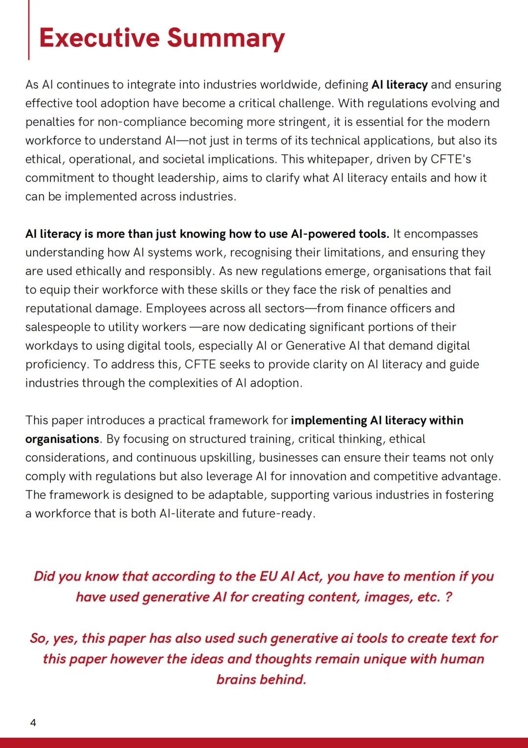 在 AI 重塑工作模式与社会规则的浪潮中,AI 素养已成为必备生存技能。无论是个人寻求职业突破,还是组织谋划长远发展,遵循白皮书的系统化框架培育 AI 素养,都是把握技术红利、降低合规风险、实现可持续增长的关键路径。