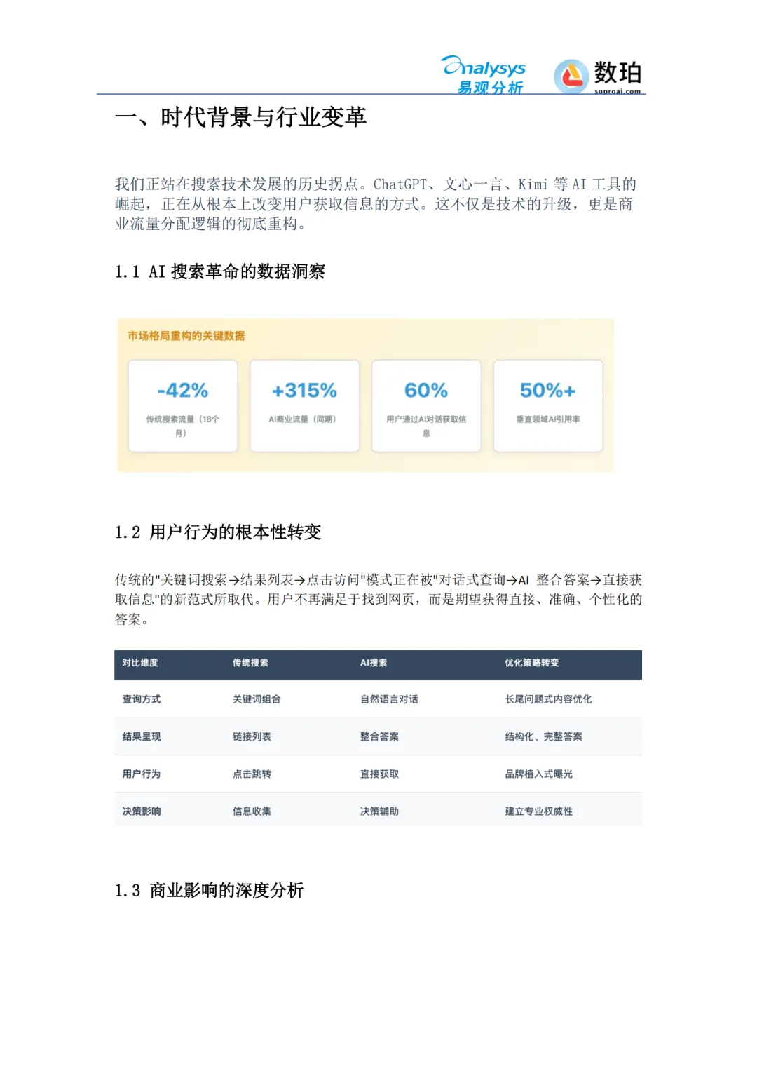 在 AI 搜索技术颠覆传统信息获取模式的关键拐点,易观分析与数珀联合发布的《AI 时代网站建设 GEO/SEO 技术标准蓝皮书》,系统性构建了生成式引擎优化(GEO)与传统搜索引擎优化(SEO)的协同框架,为企业应对流量分配逻辑重构提供了完整解决方案。