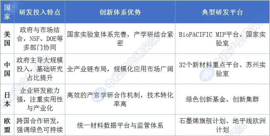 美国将材料创新视为保持其在能源、电动车、航空航天、芯片制造等领域领导地位的关键。通过《材料基因组计划》、《国家纳米技术计划》和《宽禁带半导体技术计划》等多项战略计划,美国依托国家实验室体系和CHIPS法案强化基础研究与高性能材料能力。2025年,美国国家科学基金会(NSF)投入1980万美元续签对“基于集成化学的生物材料、聚合物及先进结构材料创新平台”(BioPACIFIC MIP)项目的资助,该项目融合合成生物学、化学、自动化与人工智能,旨在重塑材料的发现、设计与应用模式。