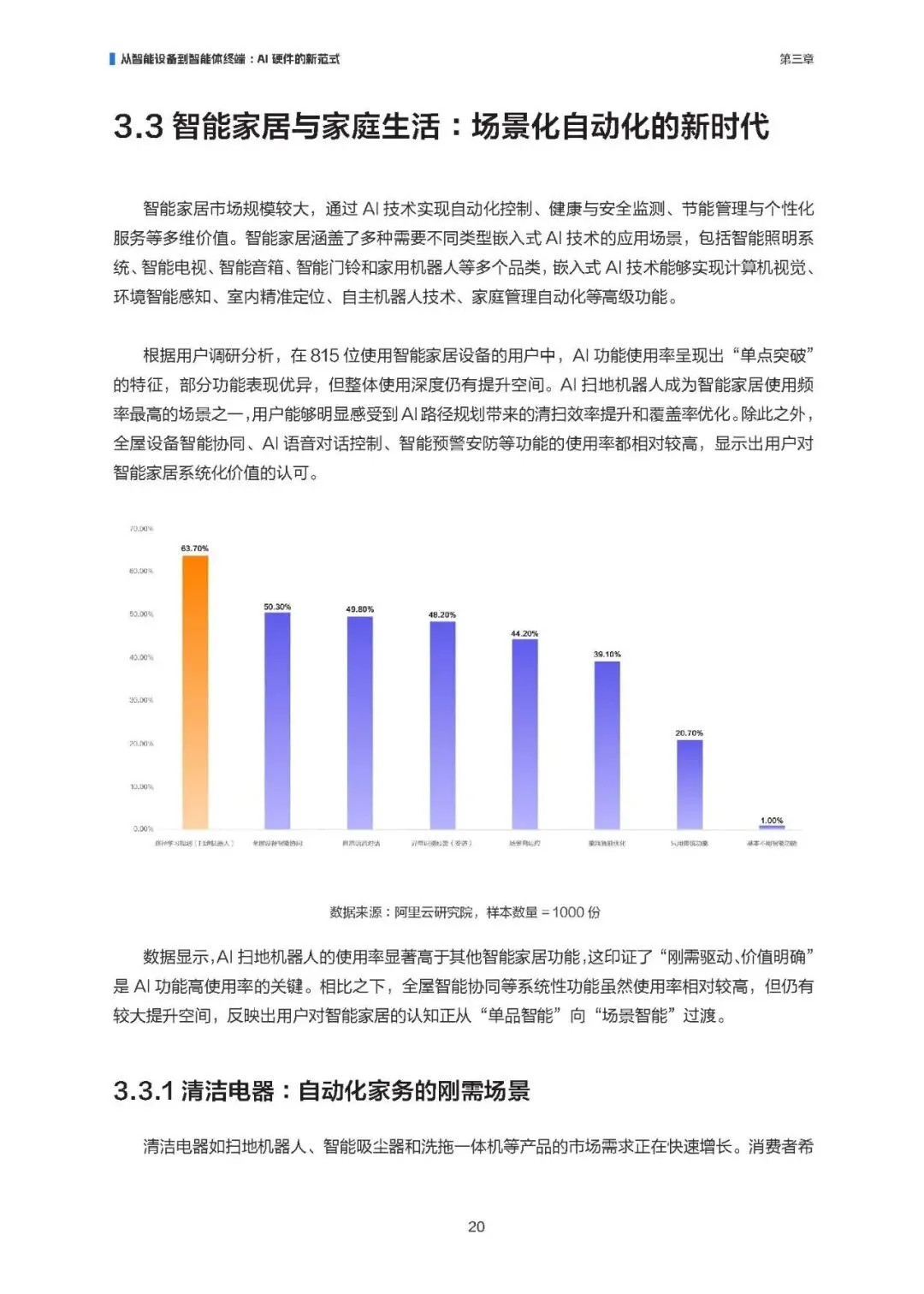 新生态:智能家居(从单品智能向场景化自动化演进,清洁、安防类设备使用率领先)。