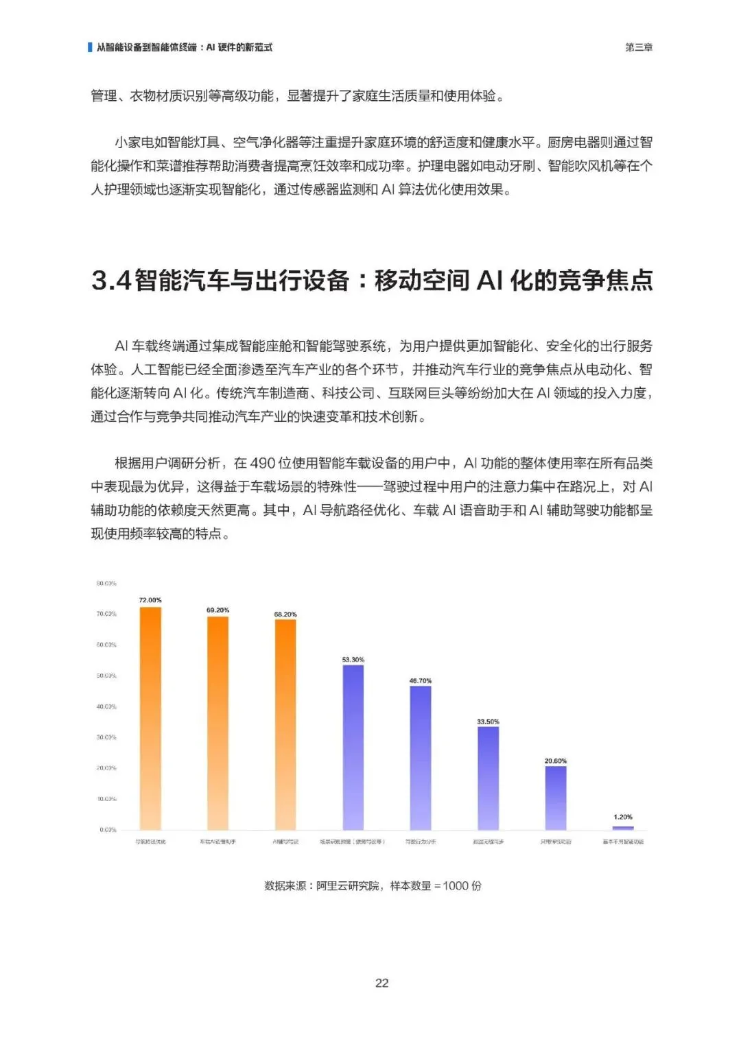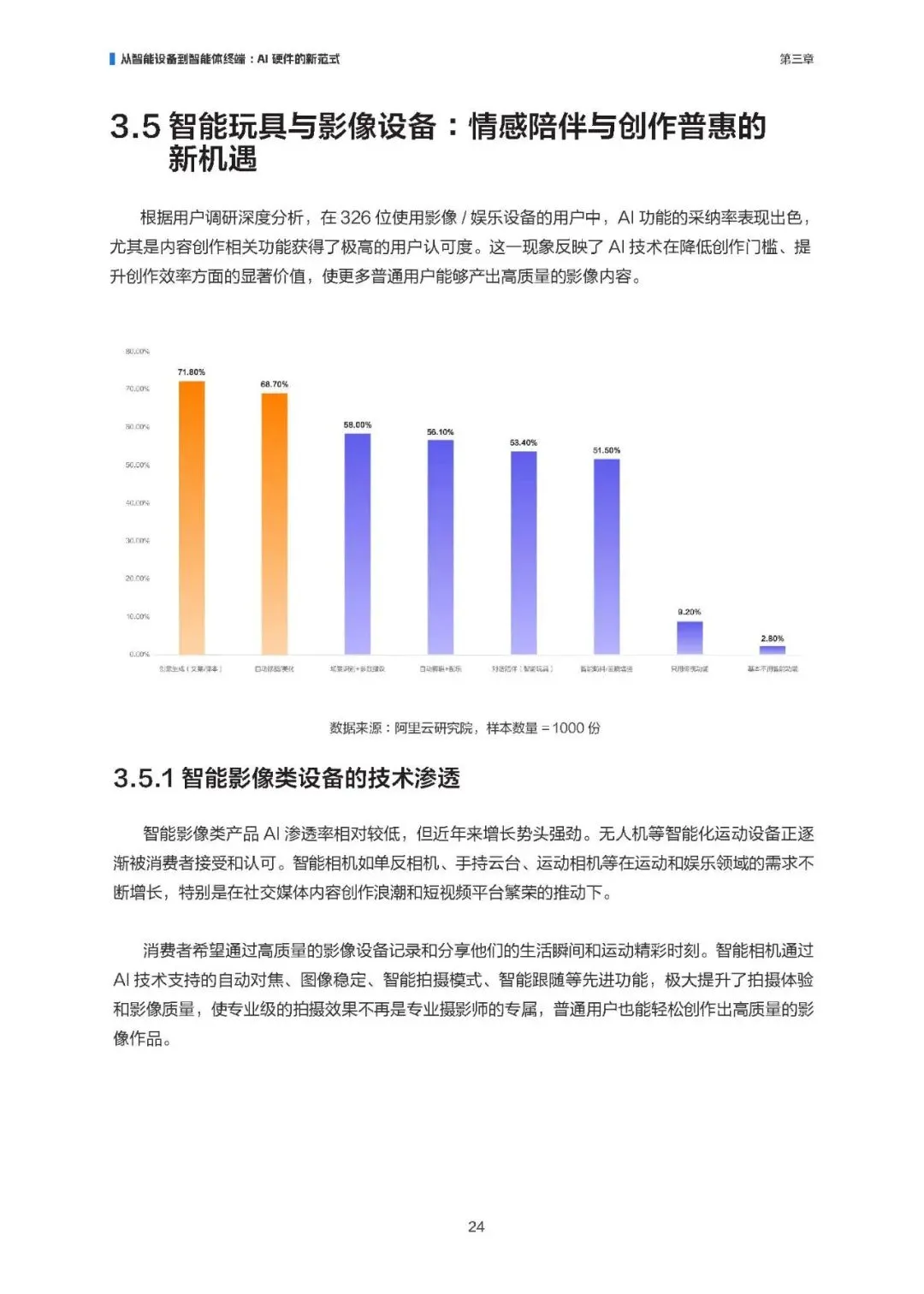 市场渗透率与购买意愿双高,可穿戴设备、教育办公终端等高频场景使用度领先;