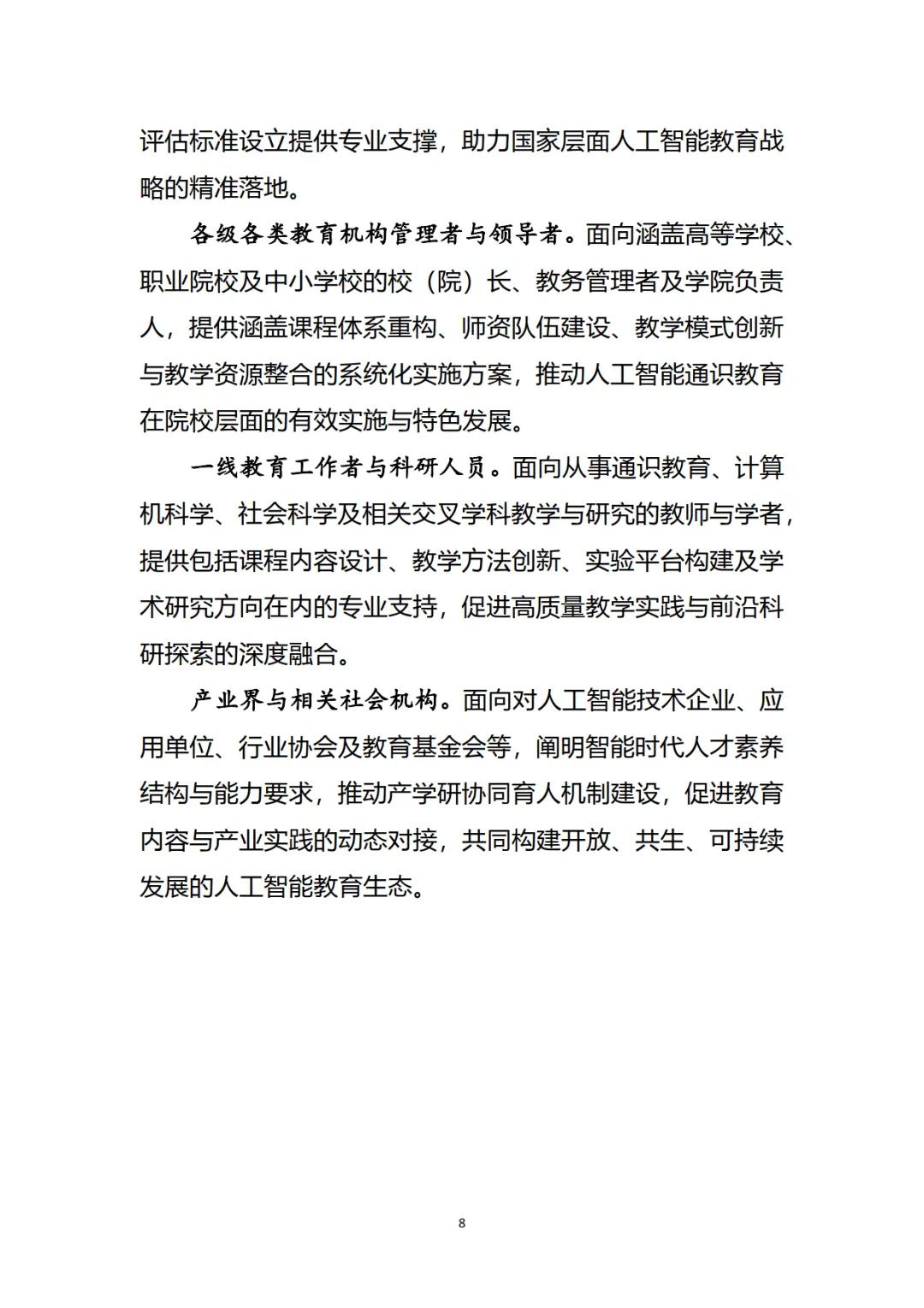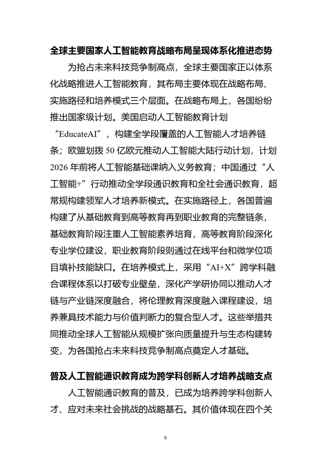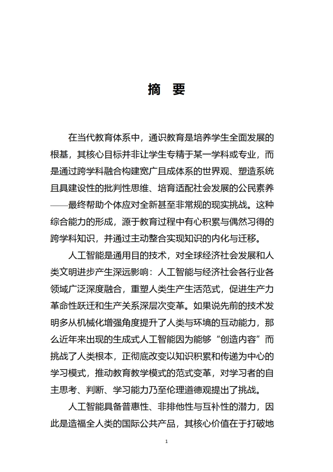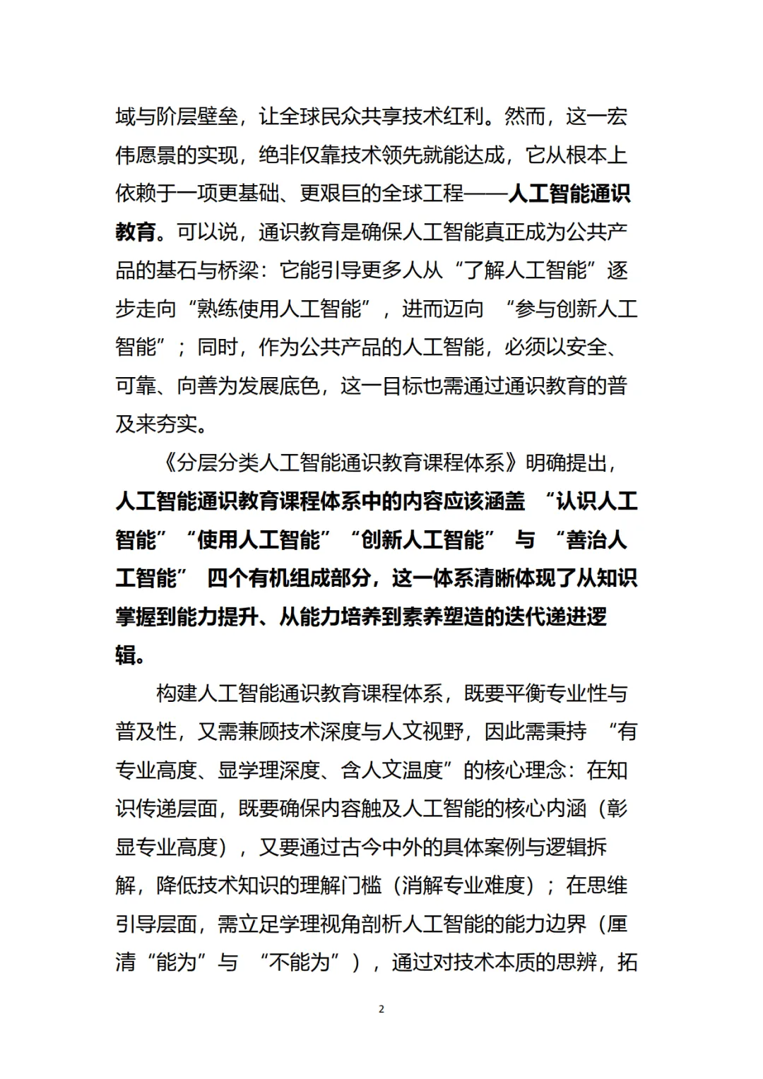 报告围绕分层分类人工智能通识教育课程体系展开全面阐述,旨在为智能时代人才培养提供系统性方案。